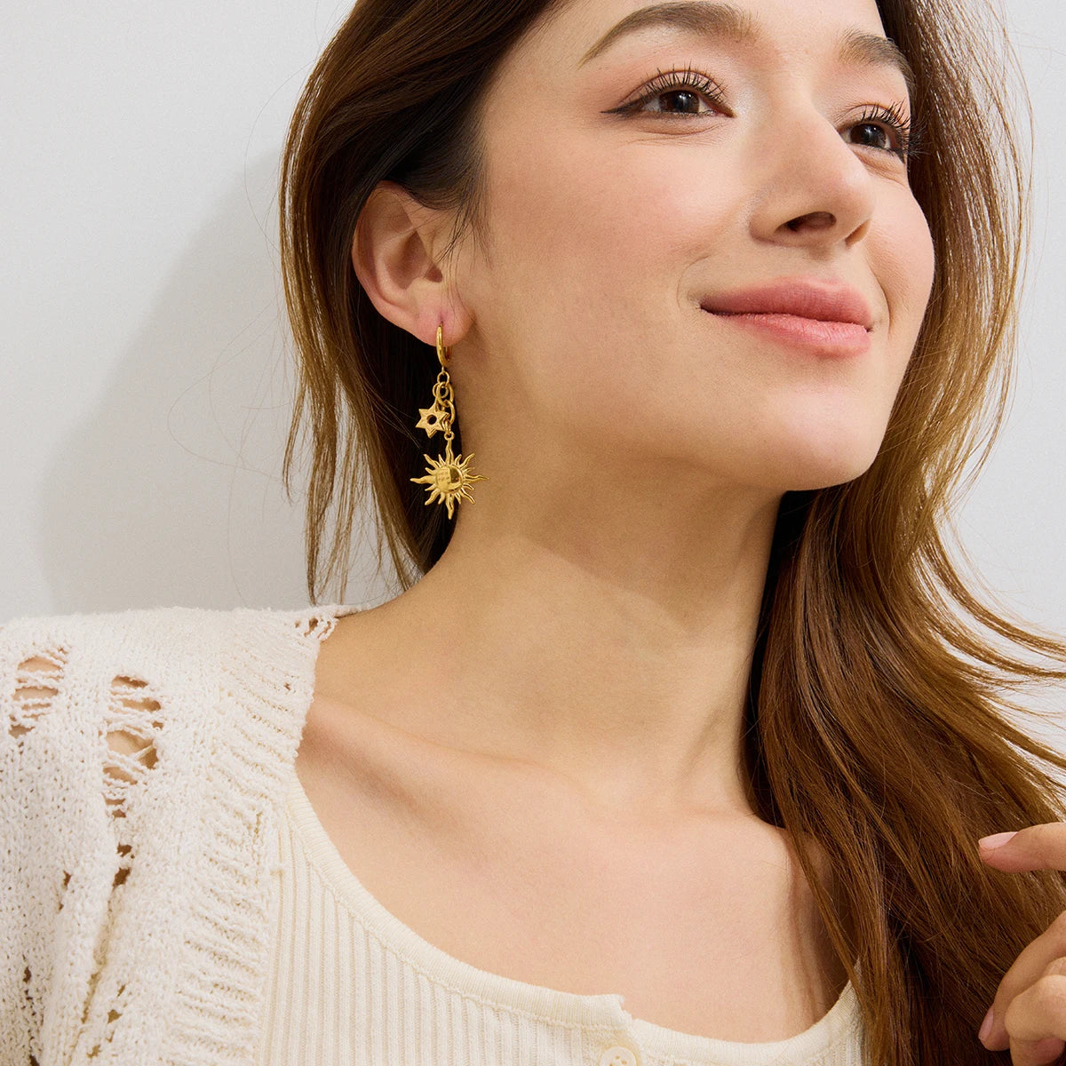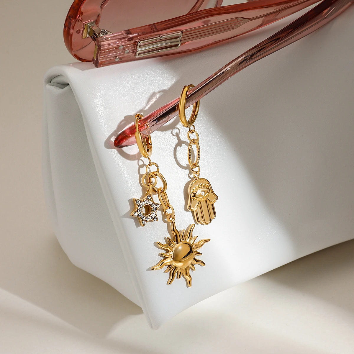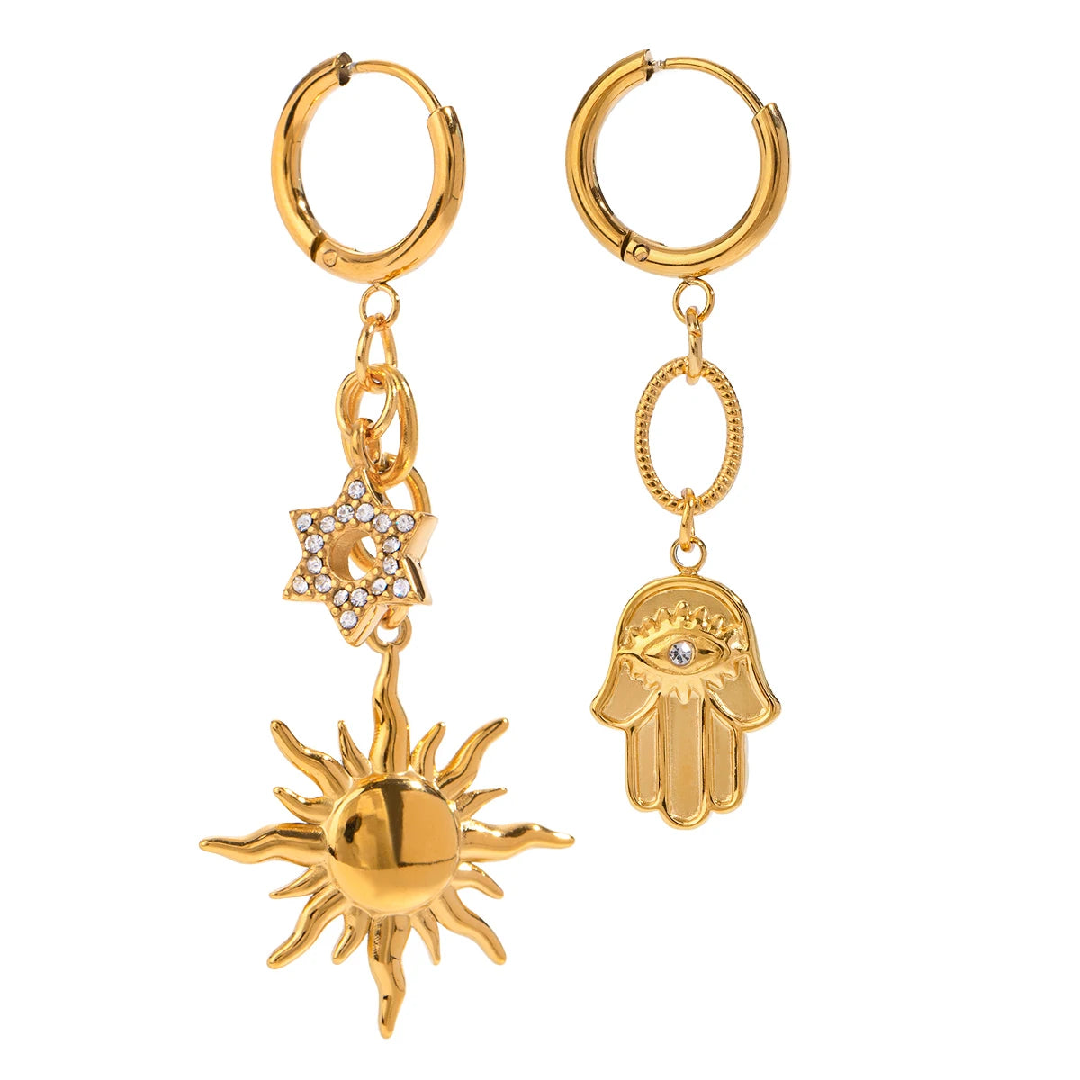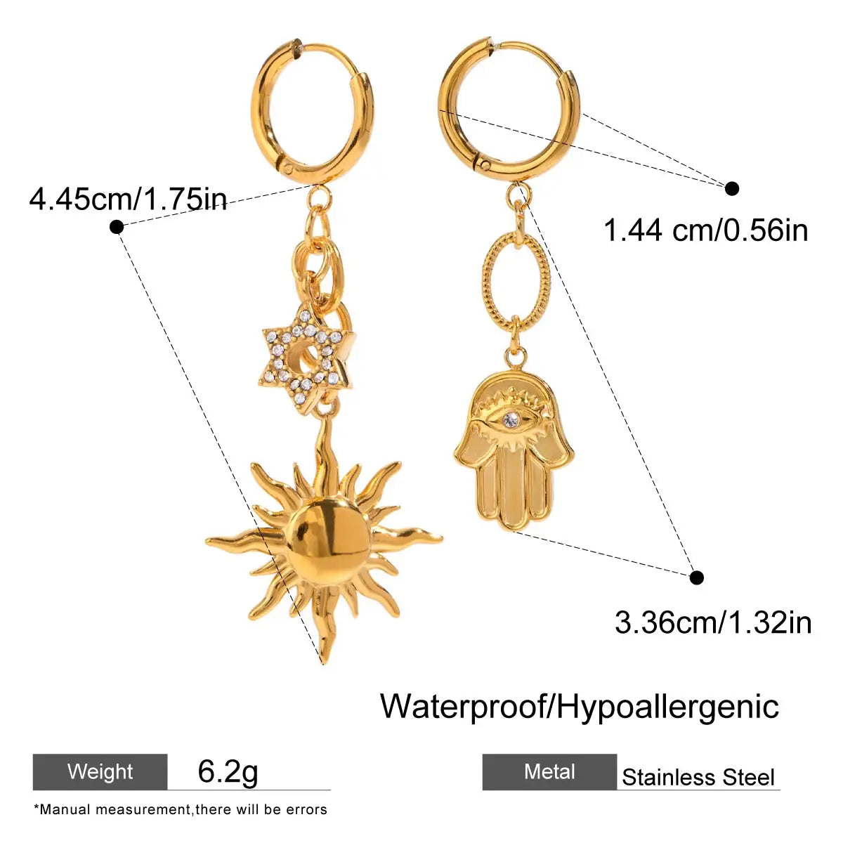 ステンレス304 低ニッケル 水に濡れても錆びにくい 18Kゴールドメッキ ピアス 太陽 目 アイ 【YJ02485】