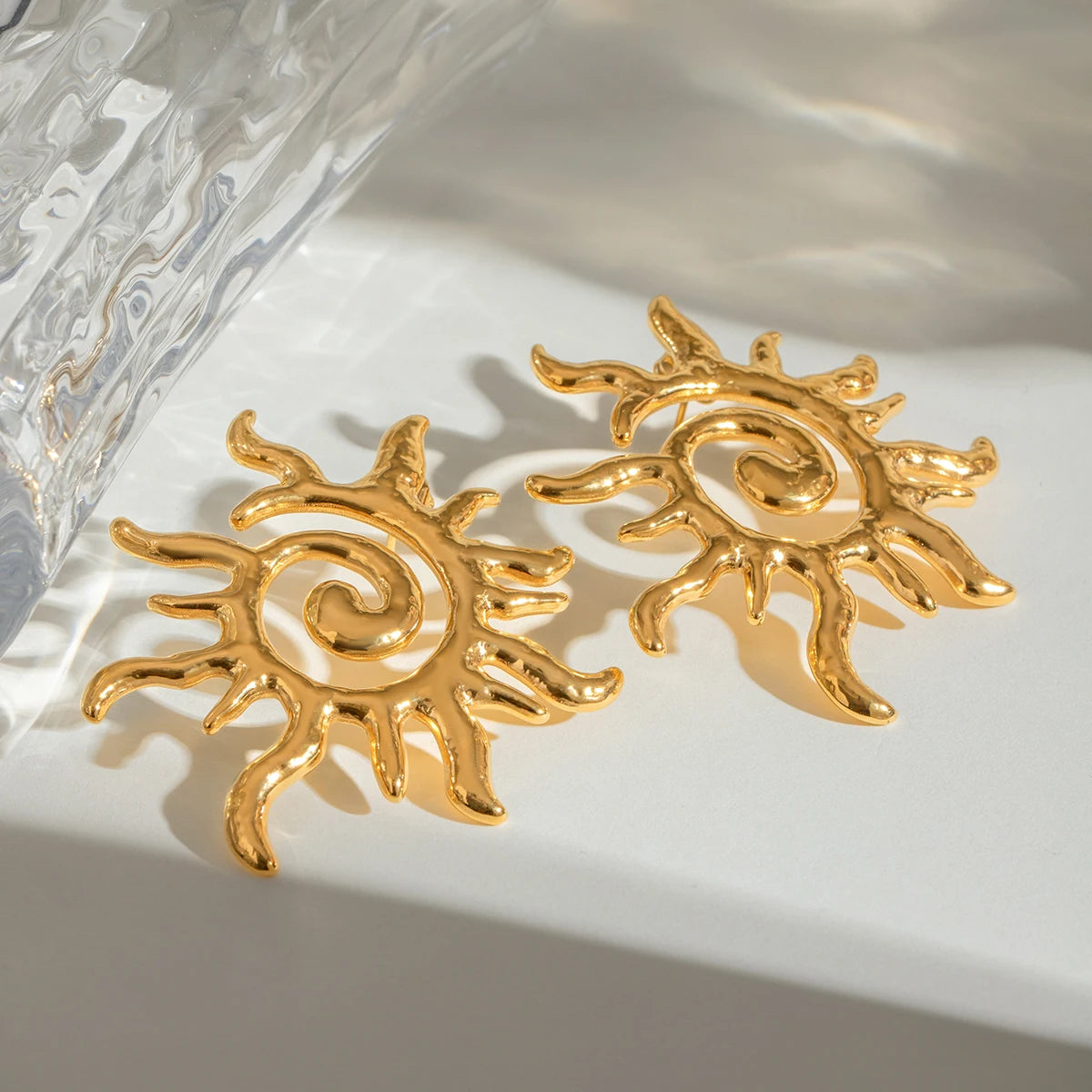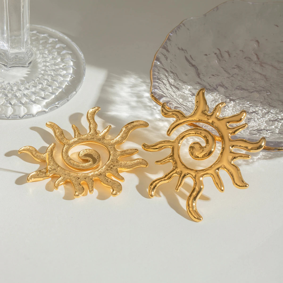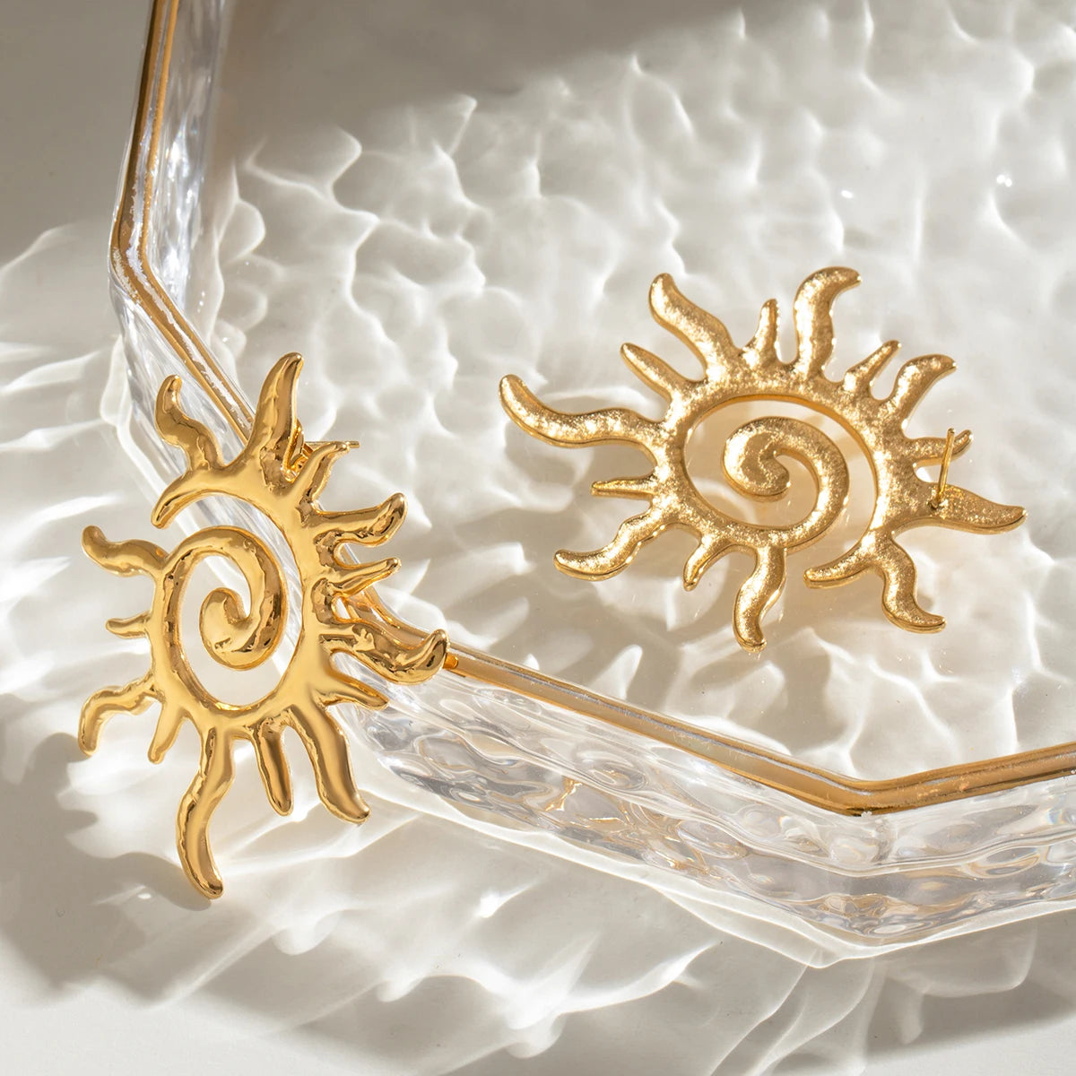 ステンレス304 低ニッケル 水に濡れても錆びにくい 18Kゴールドメッキ ピアス 太陽 【YJ03163】