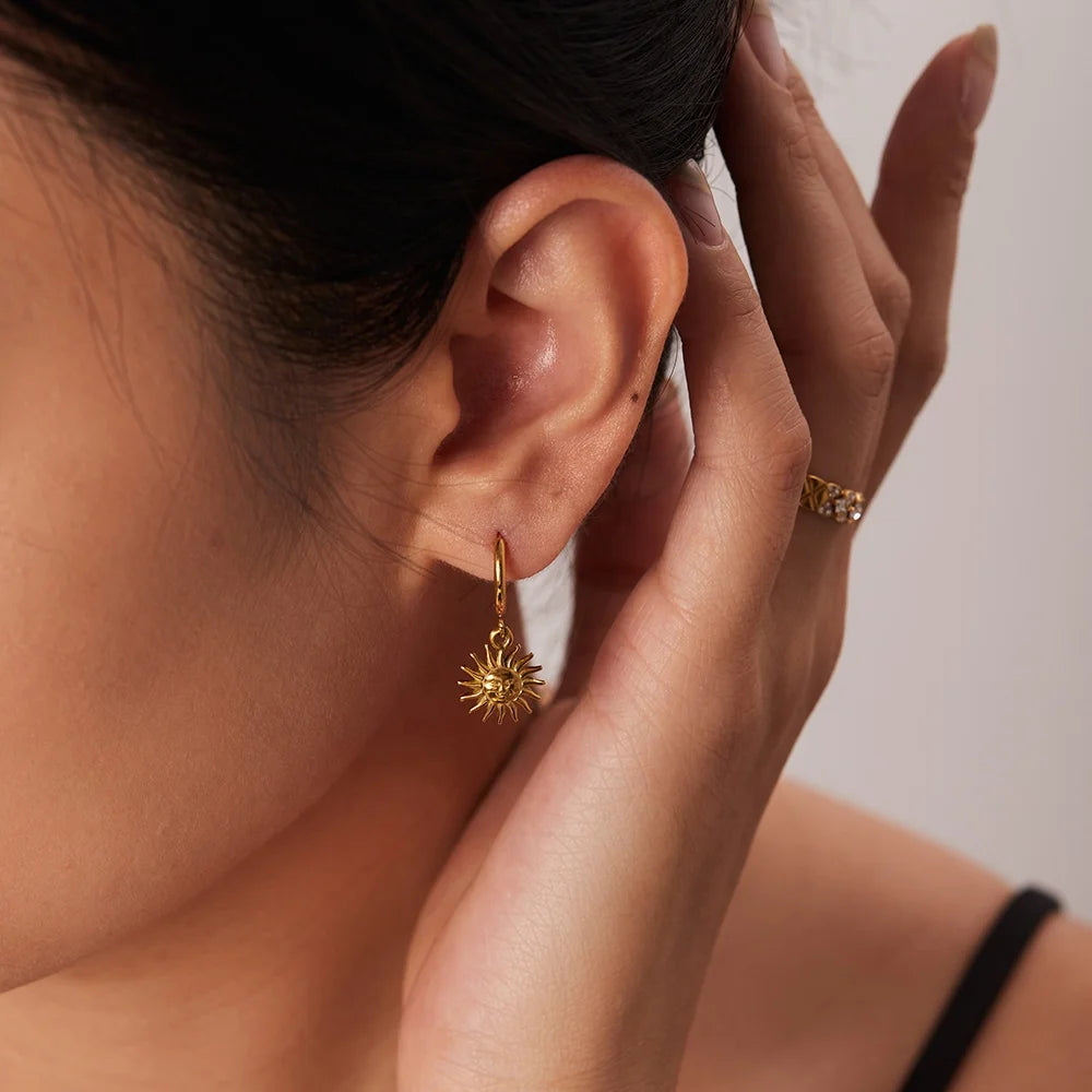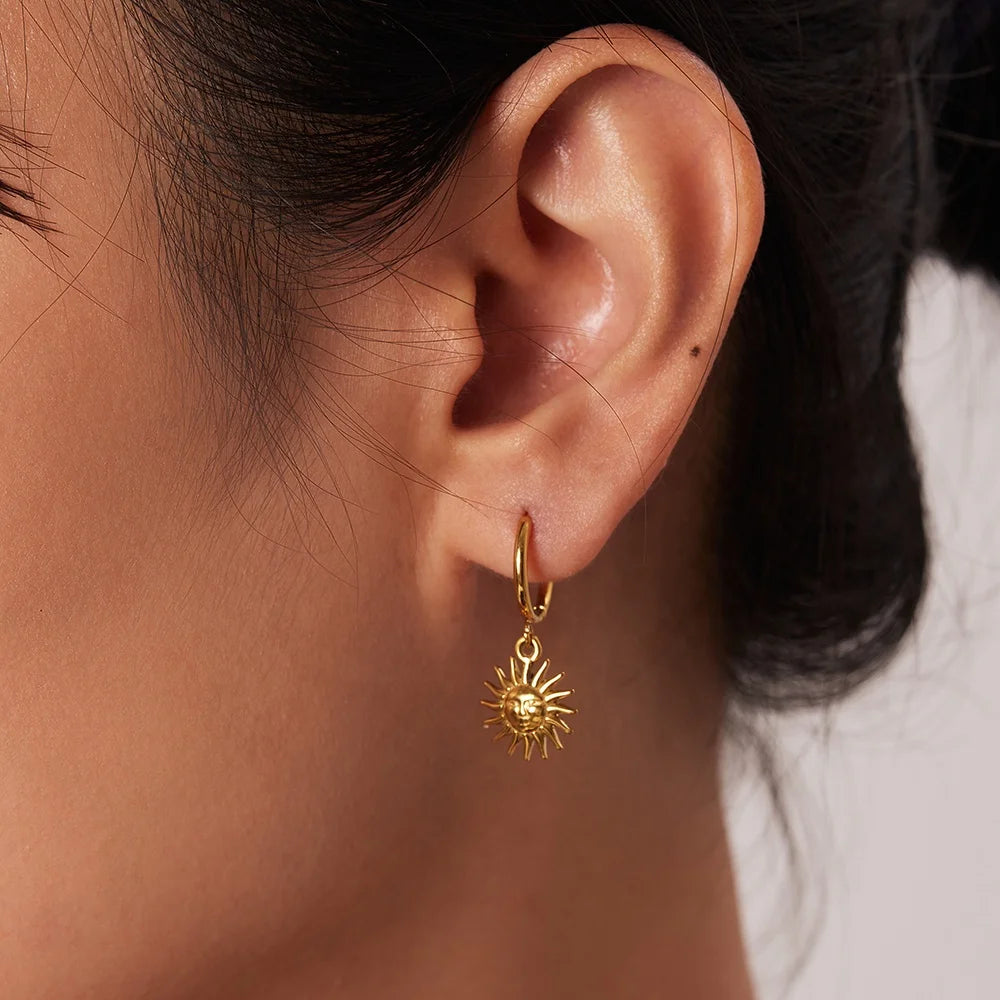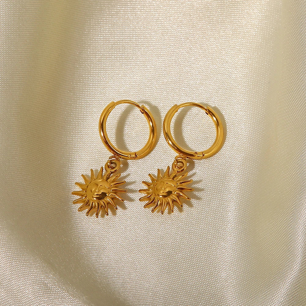 ステンレス304 低ニッケル 水に濡れても錆びにくい 18Kゴールドメッキ ピアス フープ 太陽 【YJ03613】