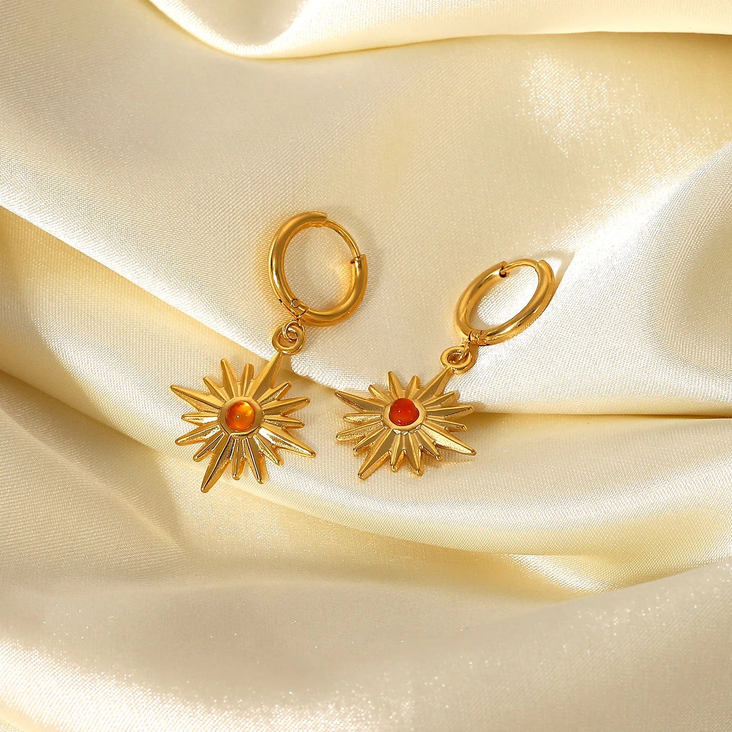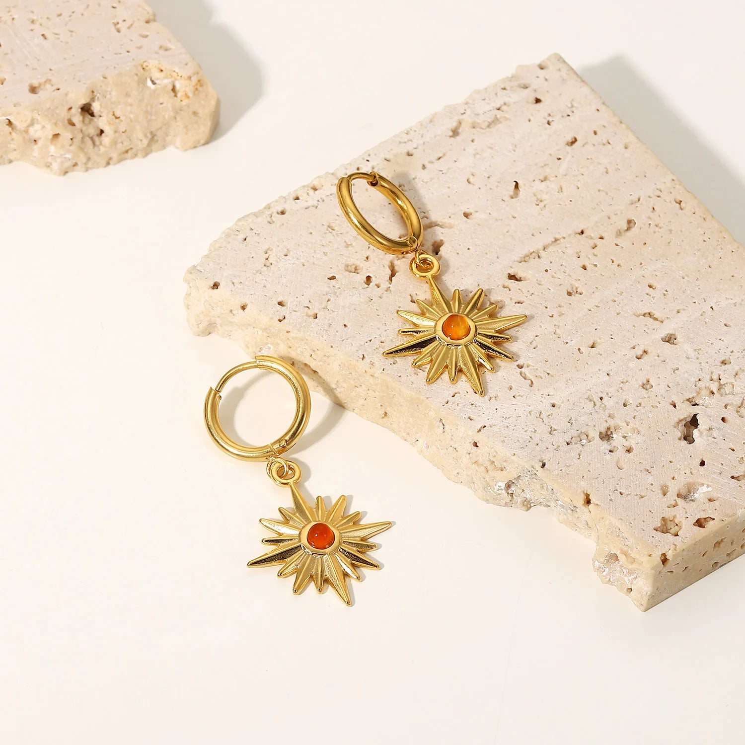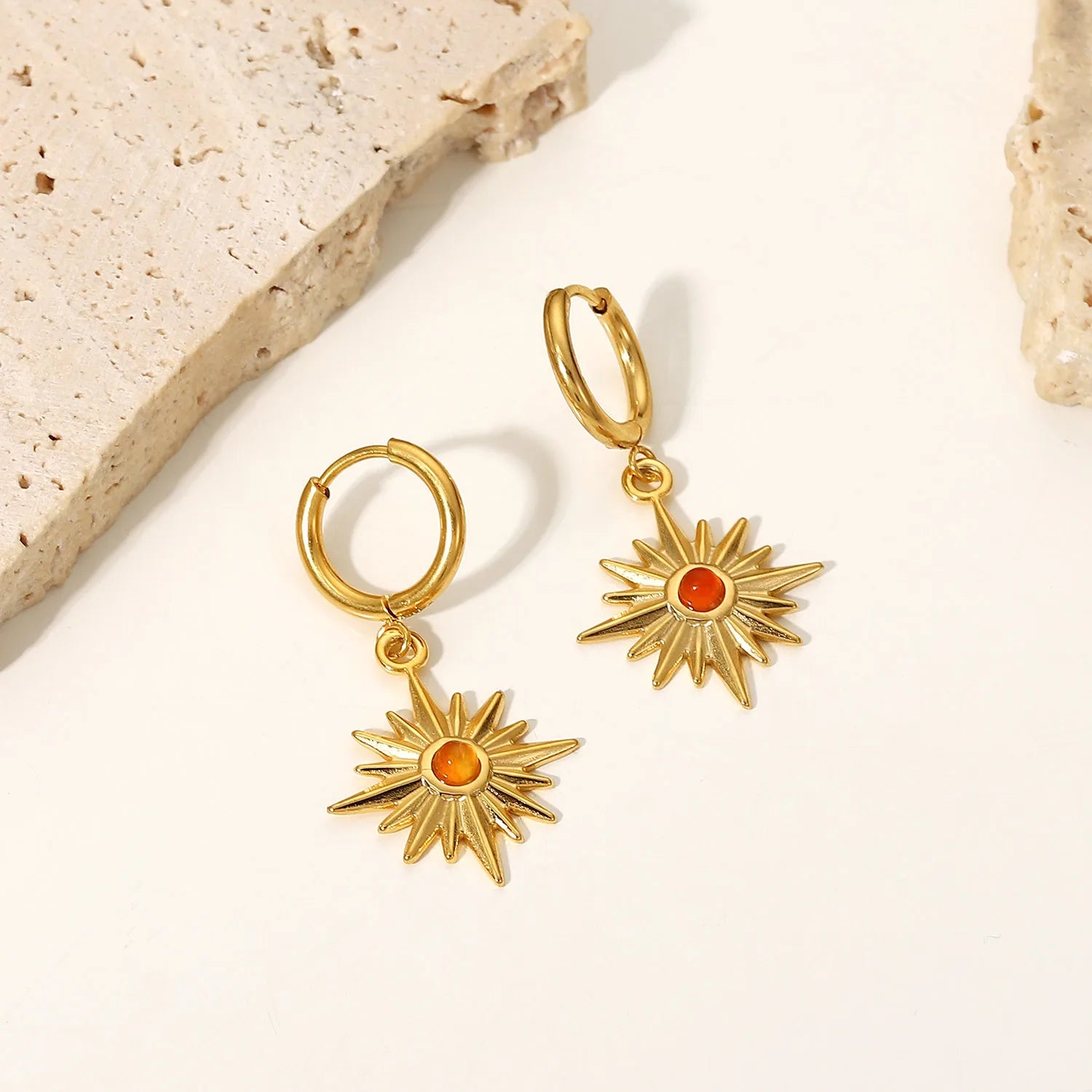 ステンレス304 低ニッケル 水に濡れても錆びにくい 18Kゴールドメッキ ピアス フープ 太陽 【YJ03940】