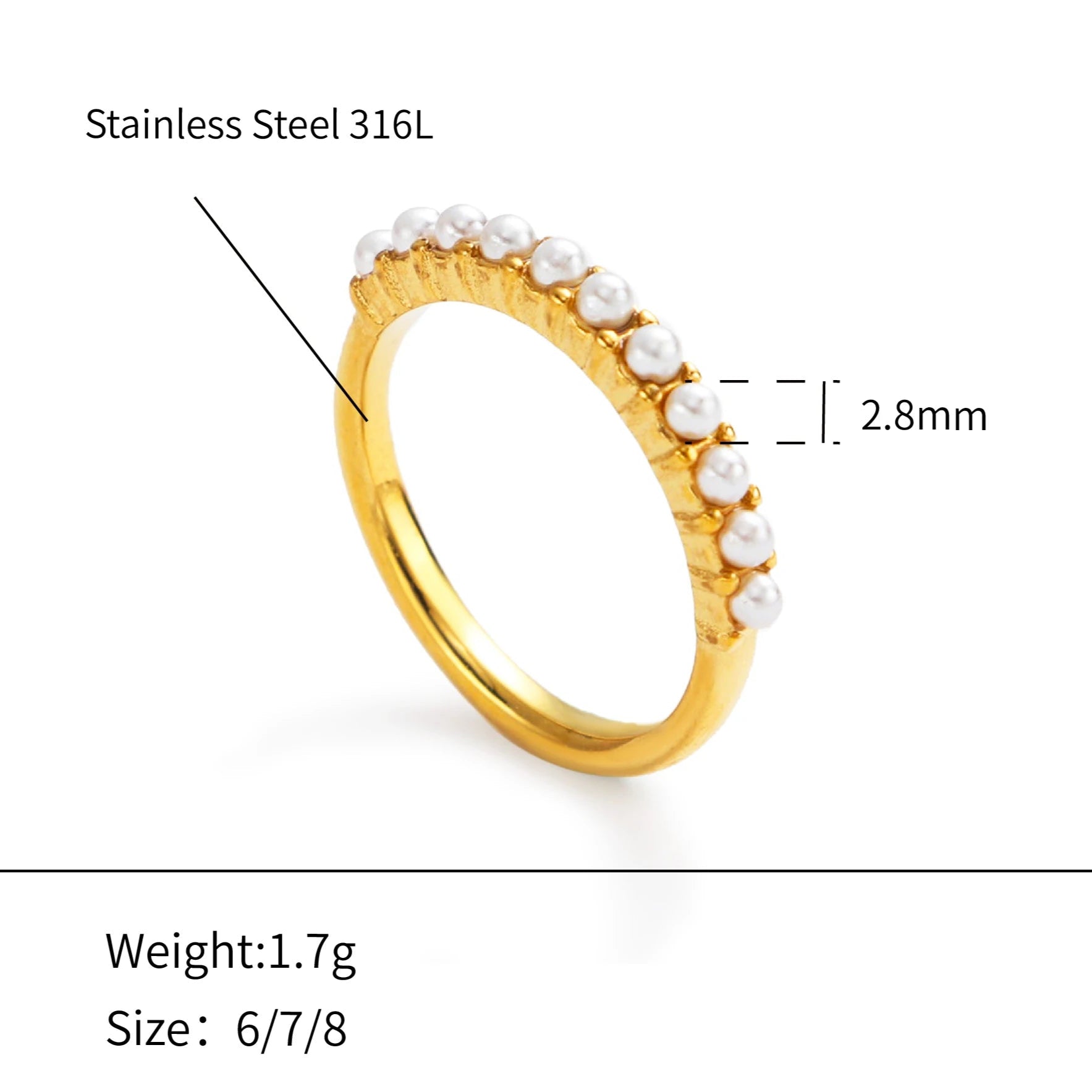 316Lサージカルステンレス リング パール 【NY00277】