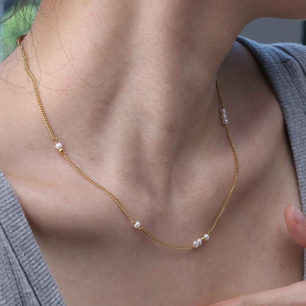 316Lサージカルステンレス ネックレス チェーン パール 【NY00302】