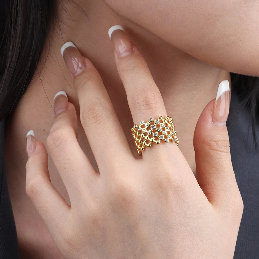 316Lサージカルステンレス 18Kゴールドメッキ リング 【NY00268】