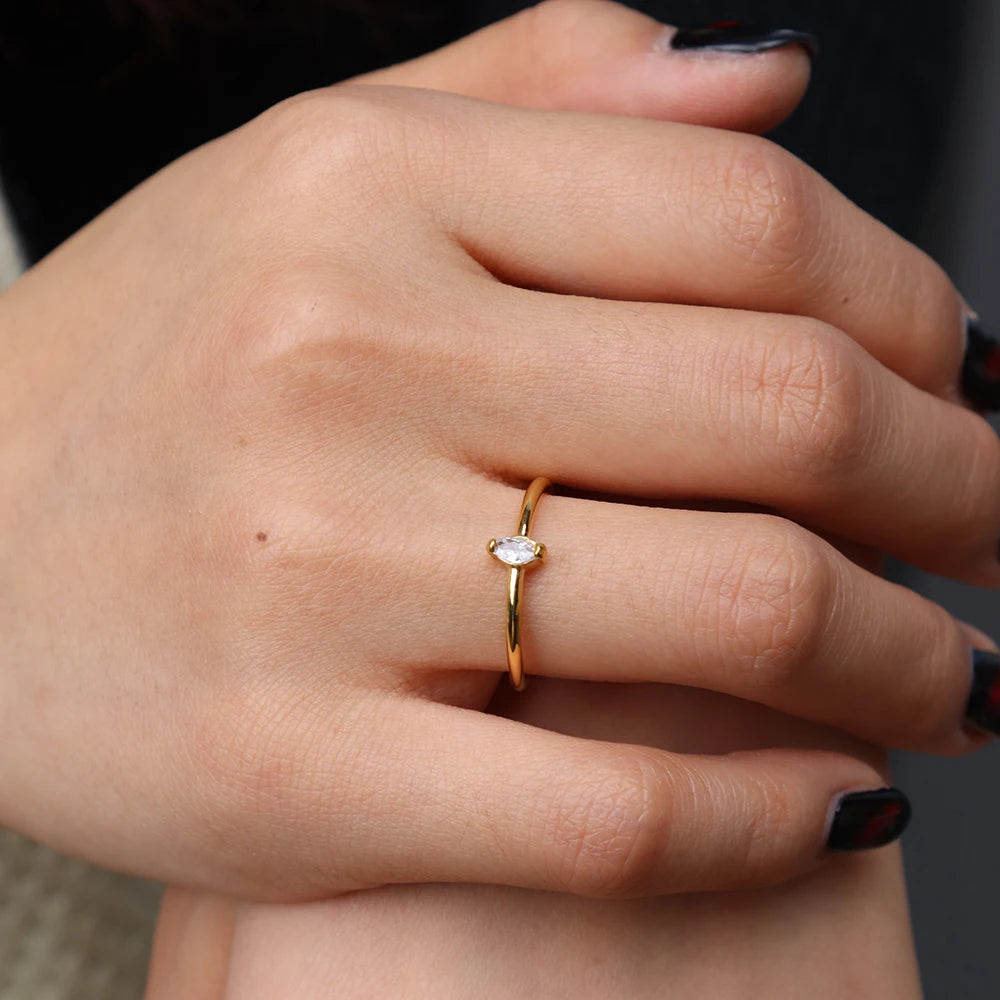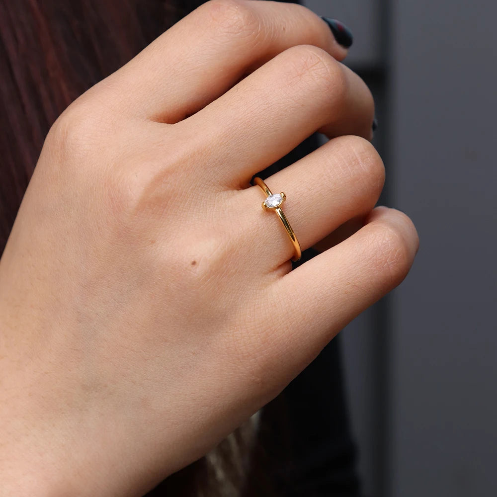 316Lサージカルステンレス 18Kゴールドメッキ リング ジルコニア【NY00353】