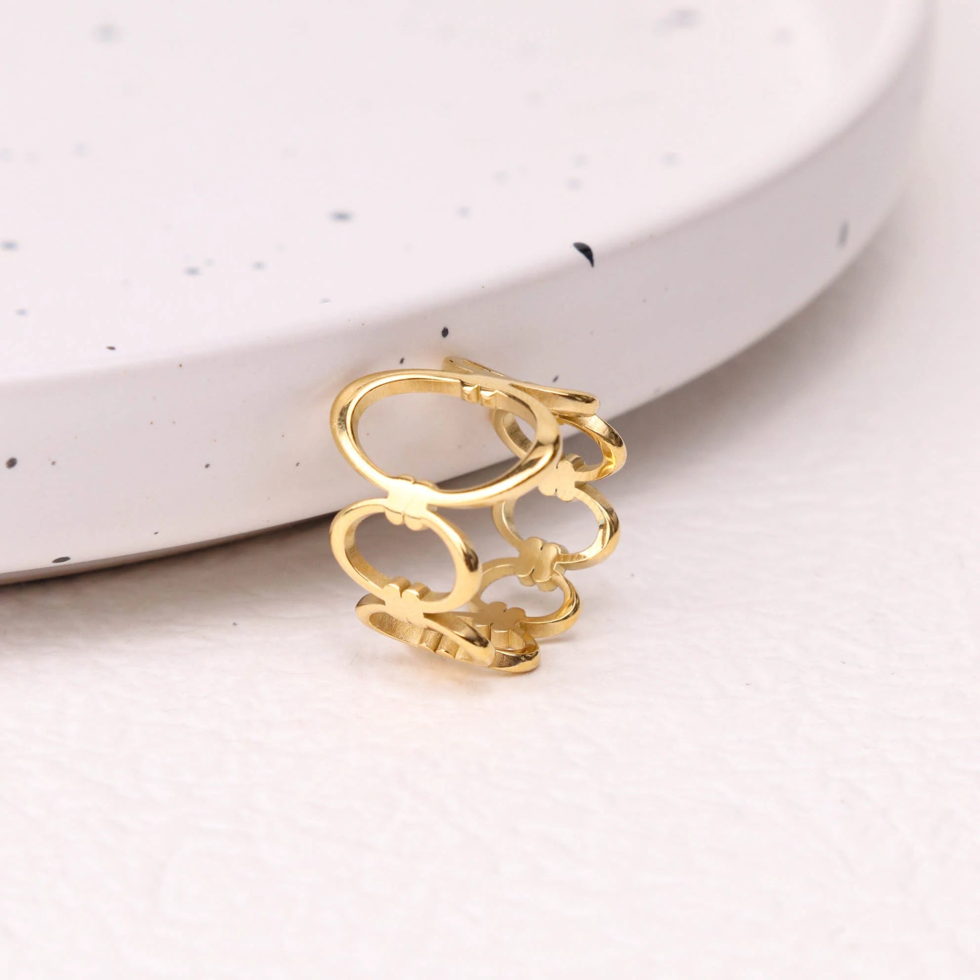 • ピアスのポスト部分は素材の特性上、キャッチがきつく感じられる場合や、スムーズに取り外せないことがありますが、これは不良品ではありませんのでご了承ください。特に新品時はゴールドメッキコーティングの厚みにより、やや固めに感じることがございます。無理に力を加えるとポストの曲がりや破損につながる可能性があるため、優しくゆっくりと着脱いただくことをおすすめします。