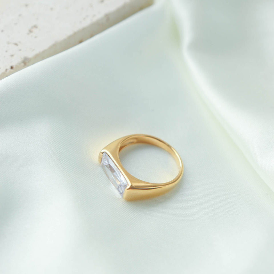 316Lサージカルステンレス リング シグネット ジルコニア【NY00411】