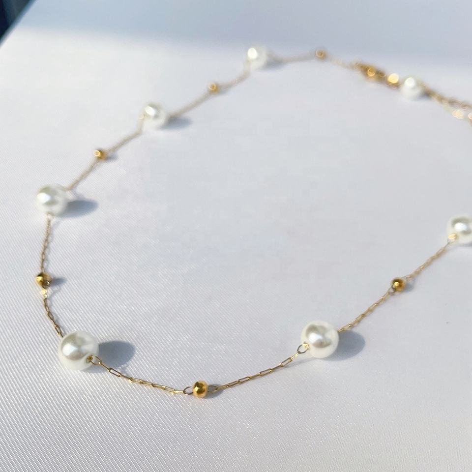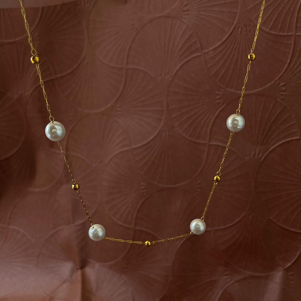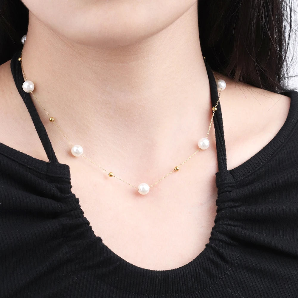 316Lサージカルステンレス ネックレス チェーン パール【NY00432】