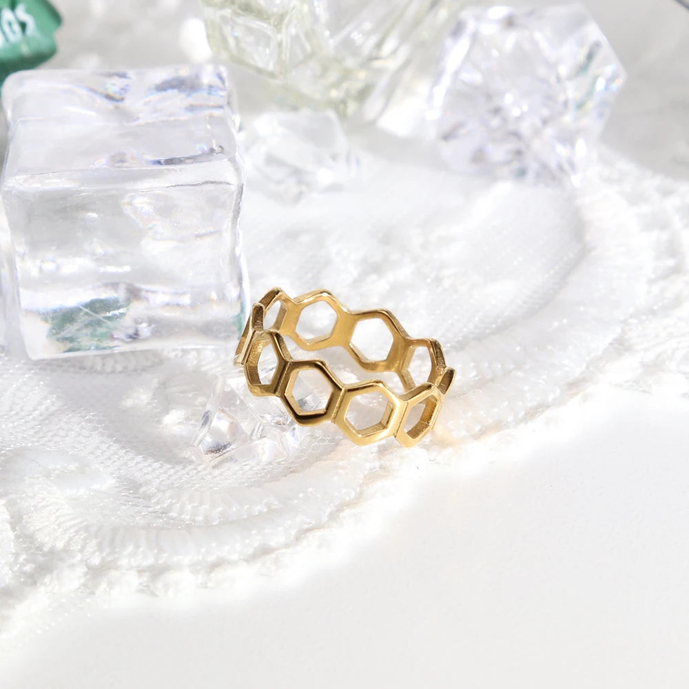 316Lサージカルステンレス 18Kゴールドメッキ リング 【NY00506】