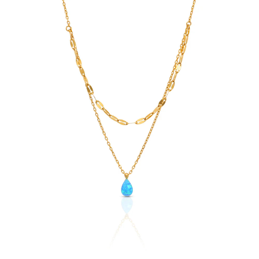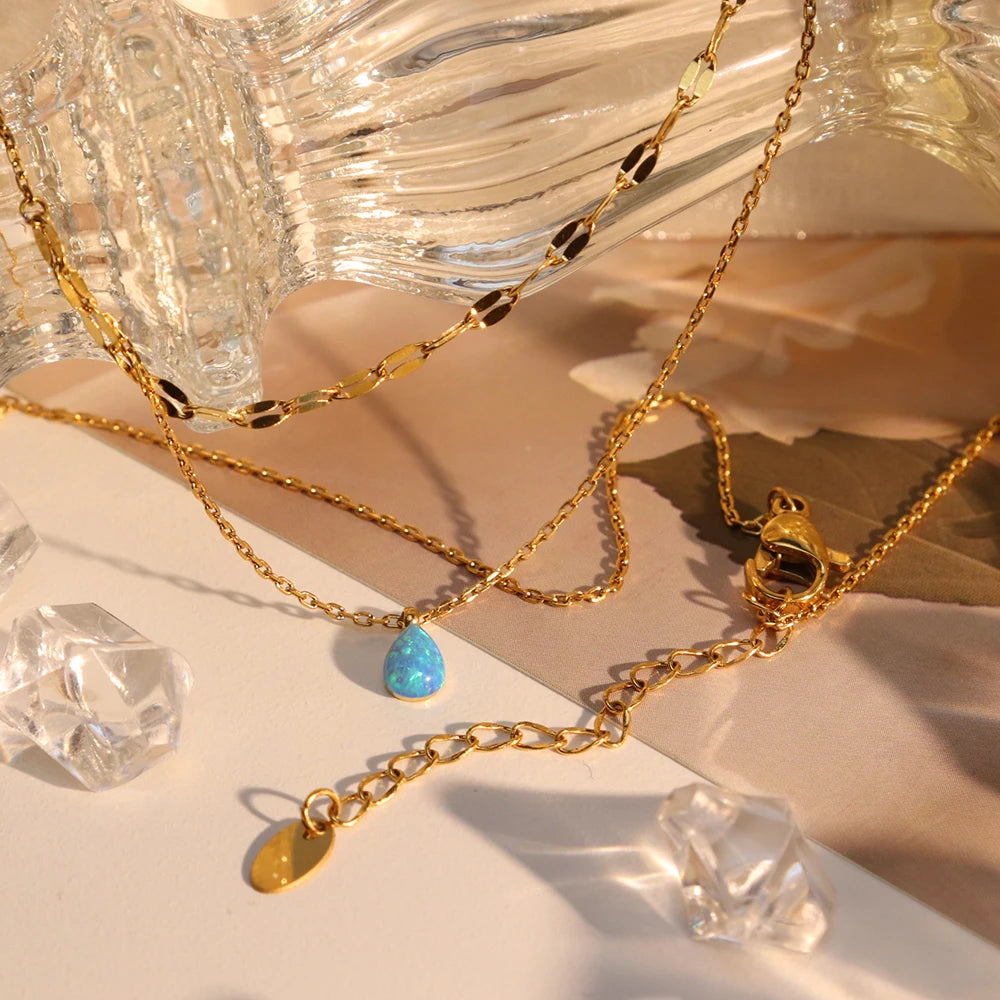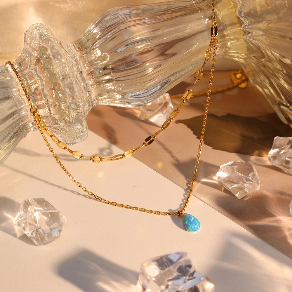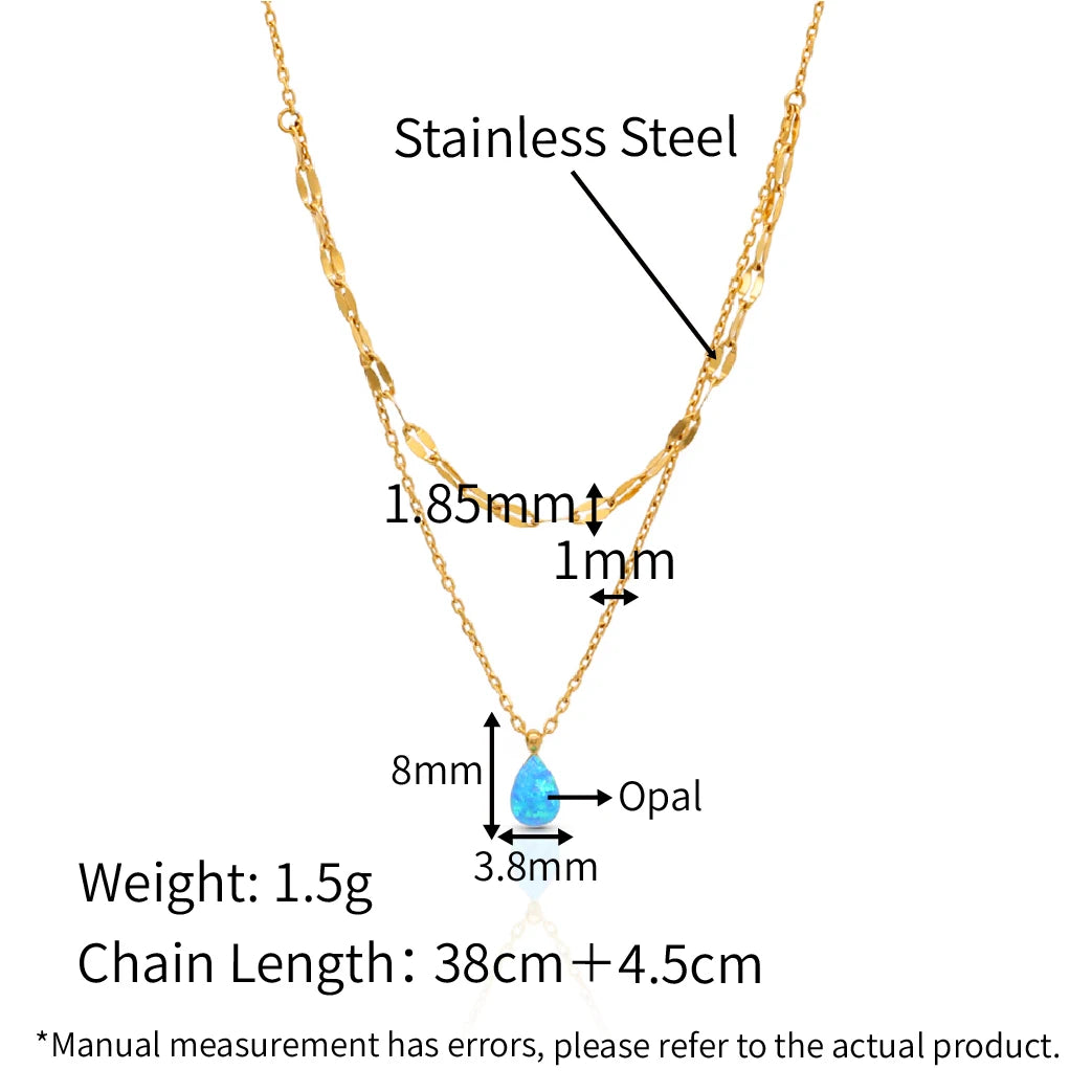 316Lサージカルステンレス ネックレス ティアドロップ 天然石風ストーン 2層【NY00448】