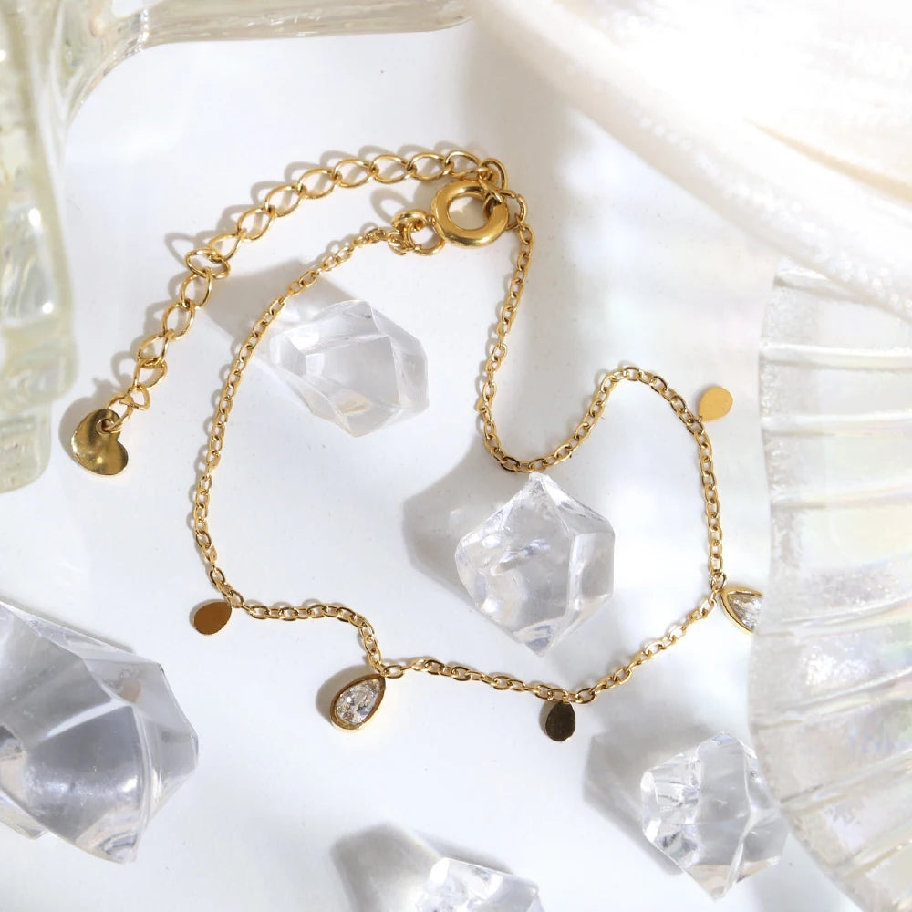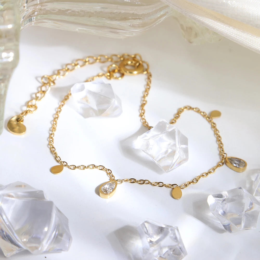 316Lサージカルステンレス ブレスレット チャーム ティアドロップ ジルコニア【NY00796】