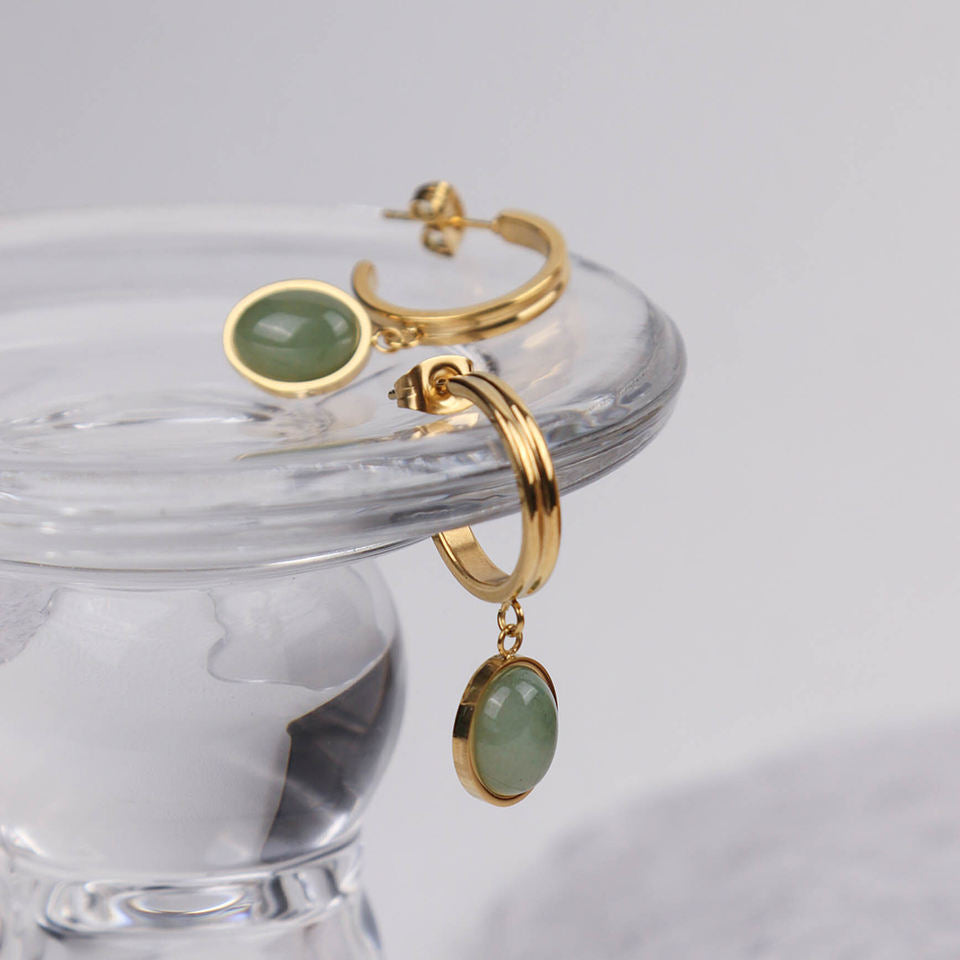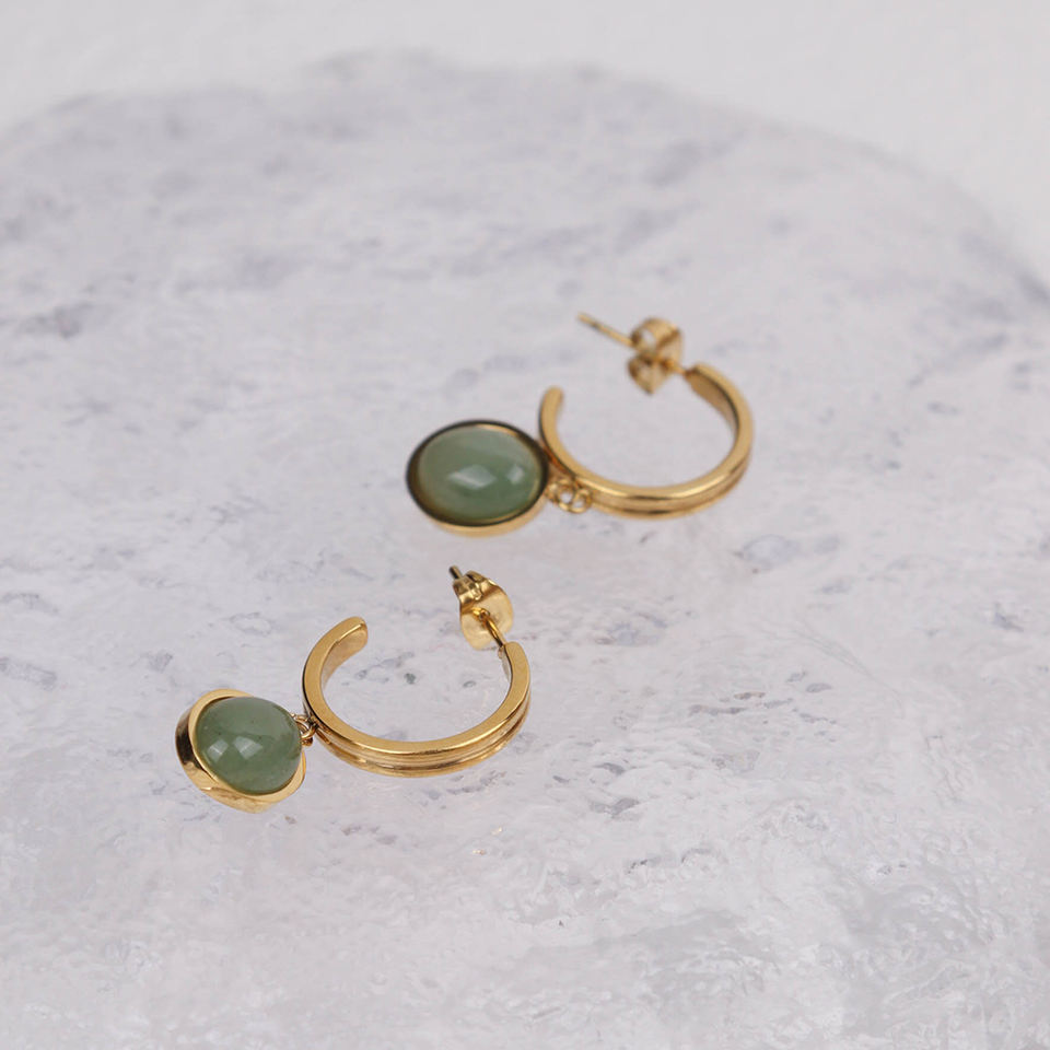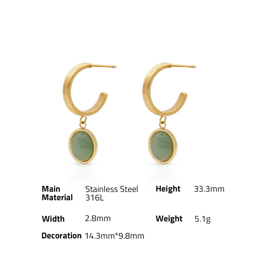 316Lサージカルステンレス 18Kゴールドメッキ ピアス ティアドロップ 天然石風ストーン【NY01025】