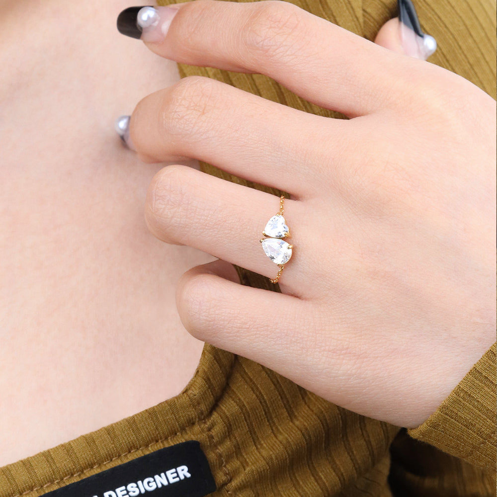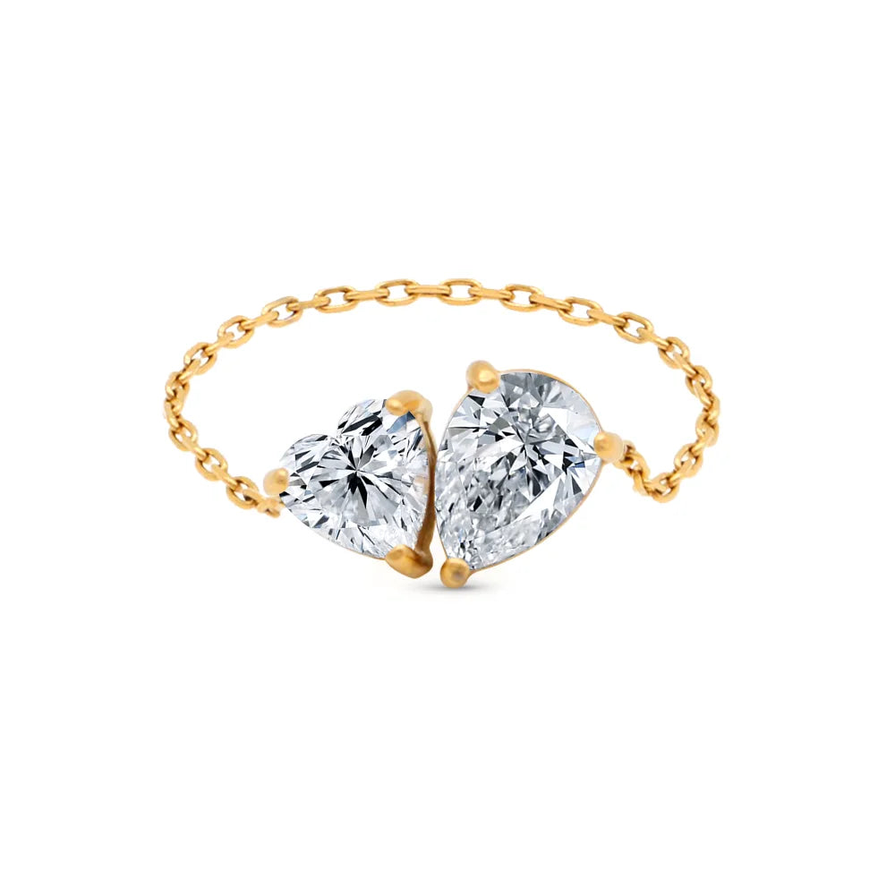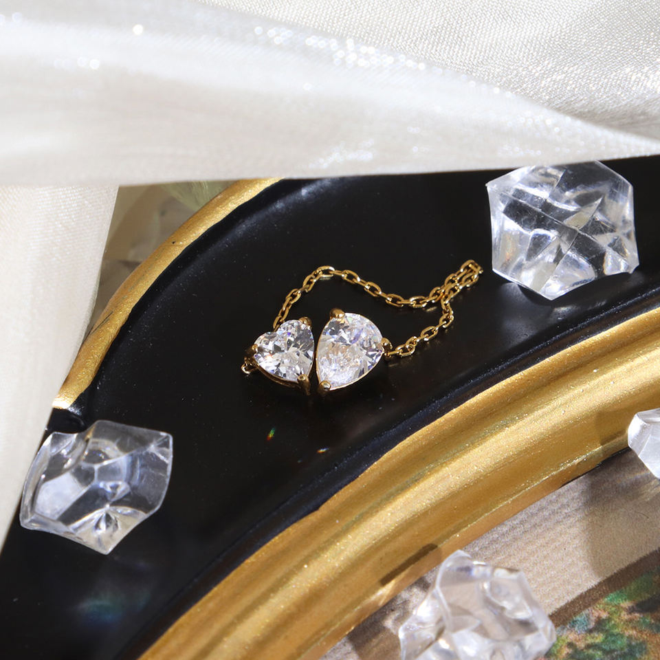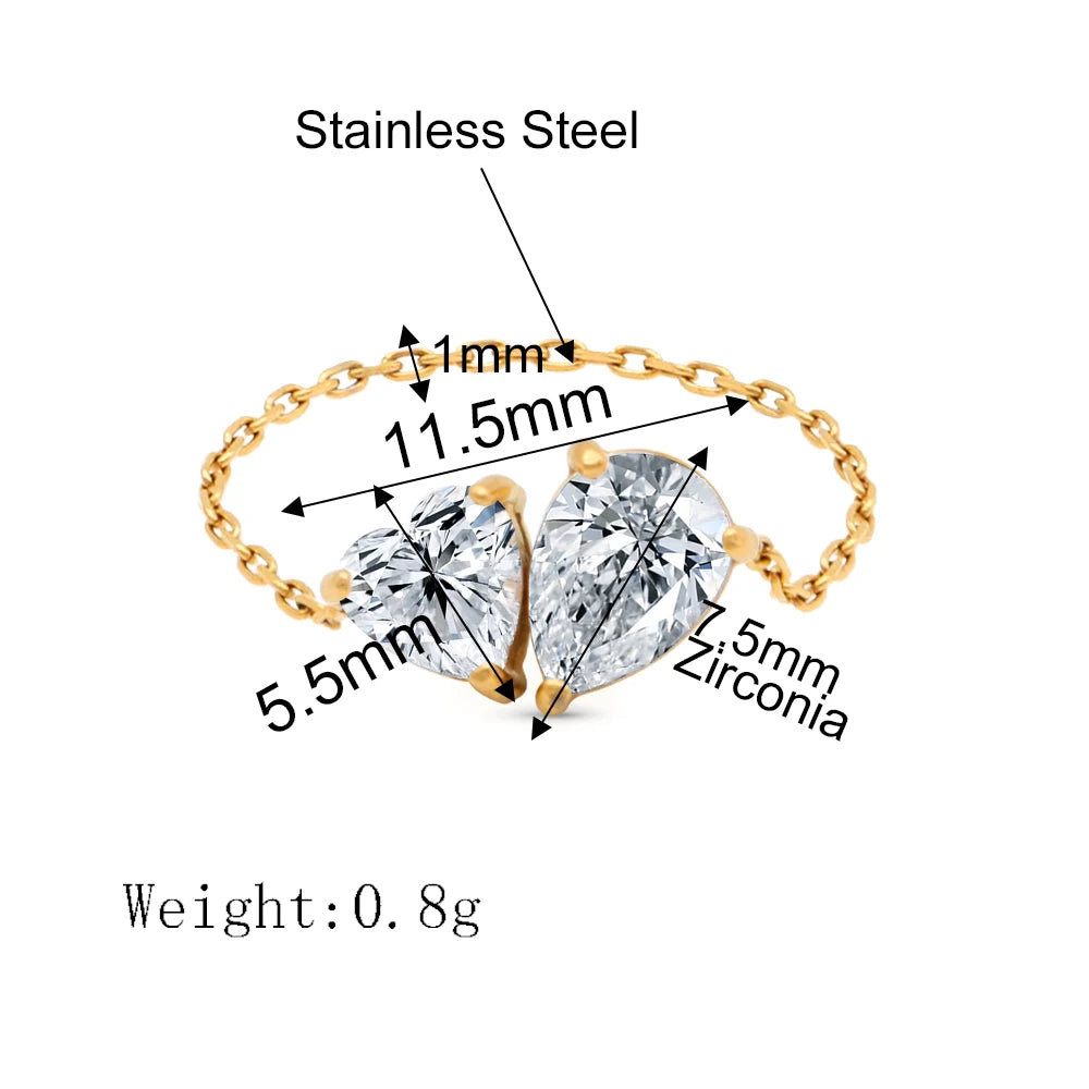 316Lサージカルステンレス リング チェーン ハート ティアドロップ ジルコニア【NY01253】