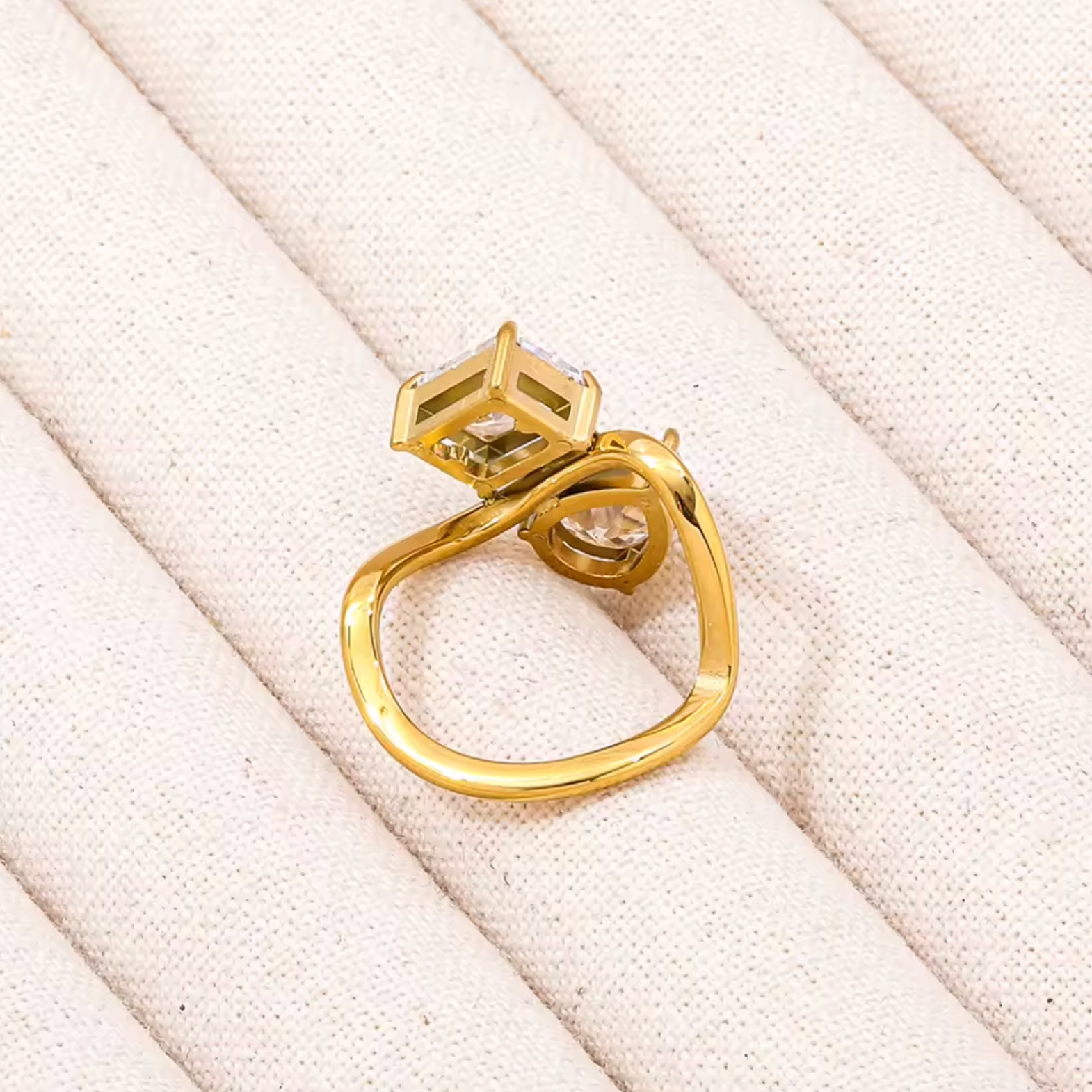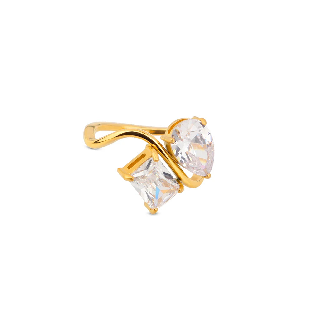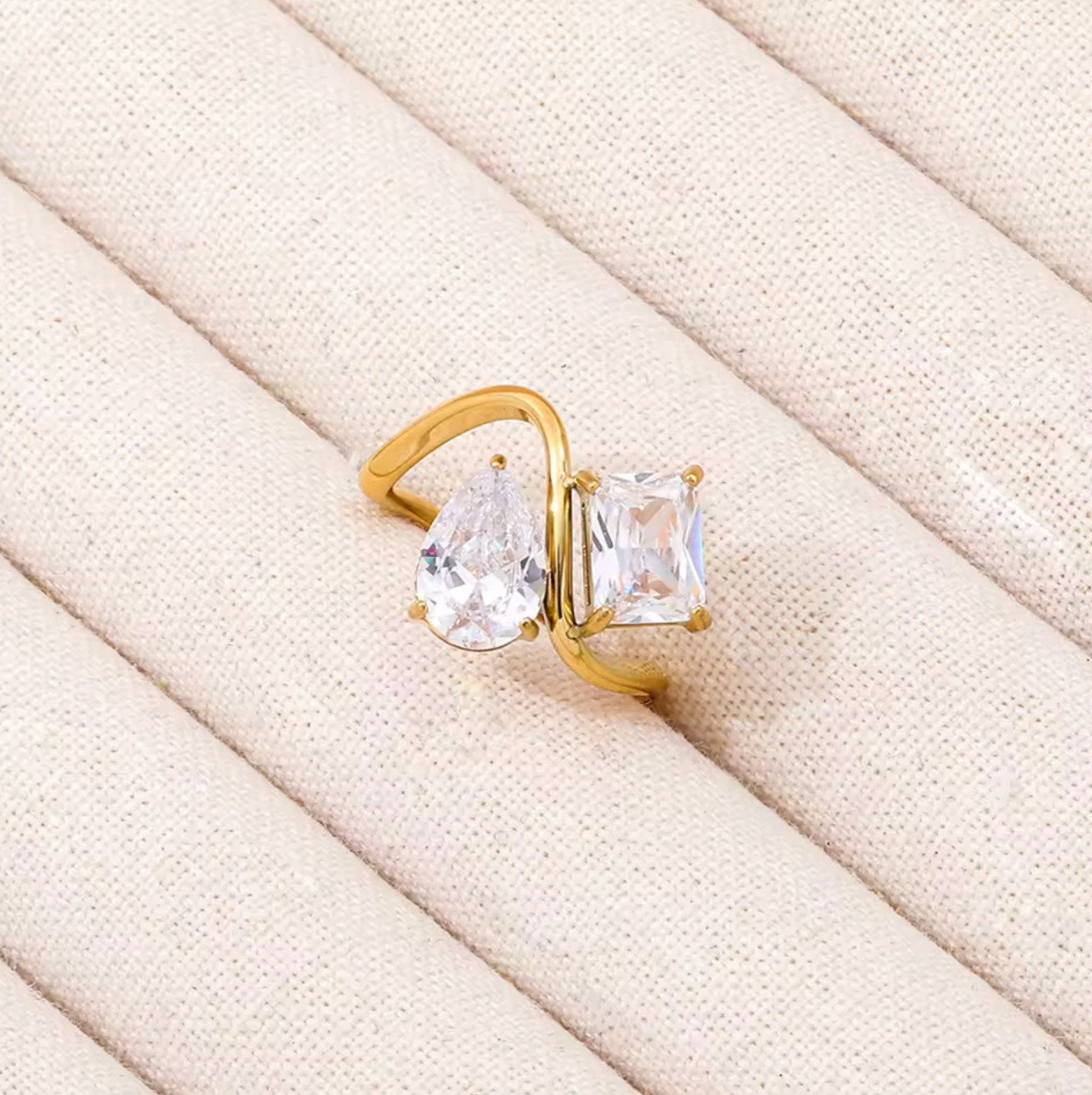 316Lサージカルステンレス リング ウェーブ ジルコニア ティアドロップ【NY01611】