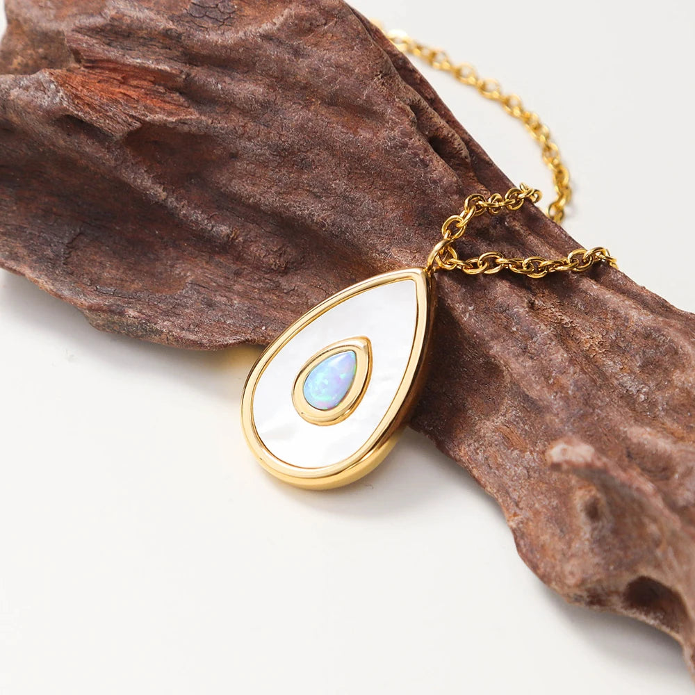 316Lサージカルステンレス ネックレス シェル ティアドロップ 【NY01695】