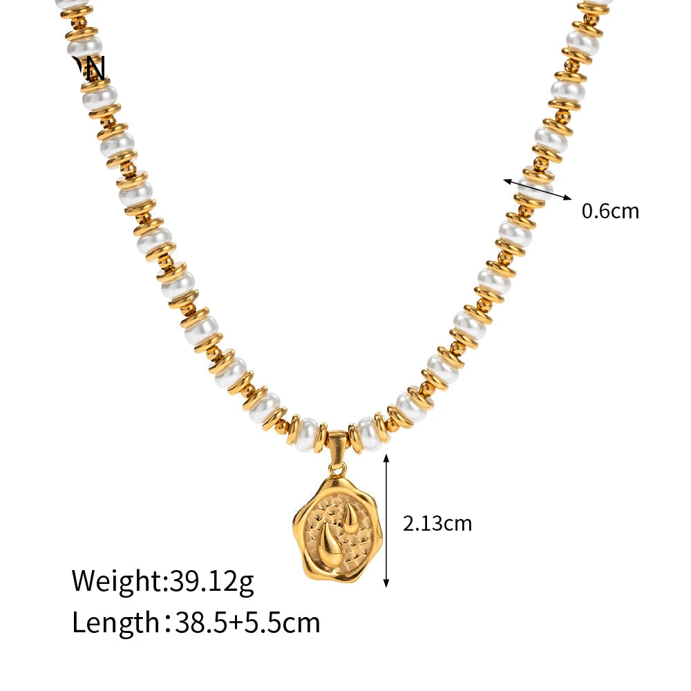 ステンレス304 ニッケルフリー 水に濡れても錆びにくい 18Kゴールドメッキ ネックレス マーメイド ティアドロップ ティアドロップ パール 【YJ00363】