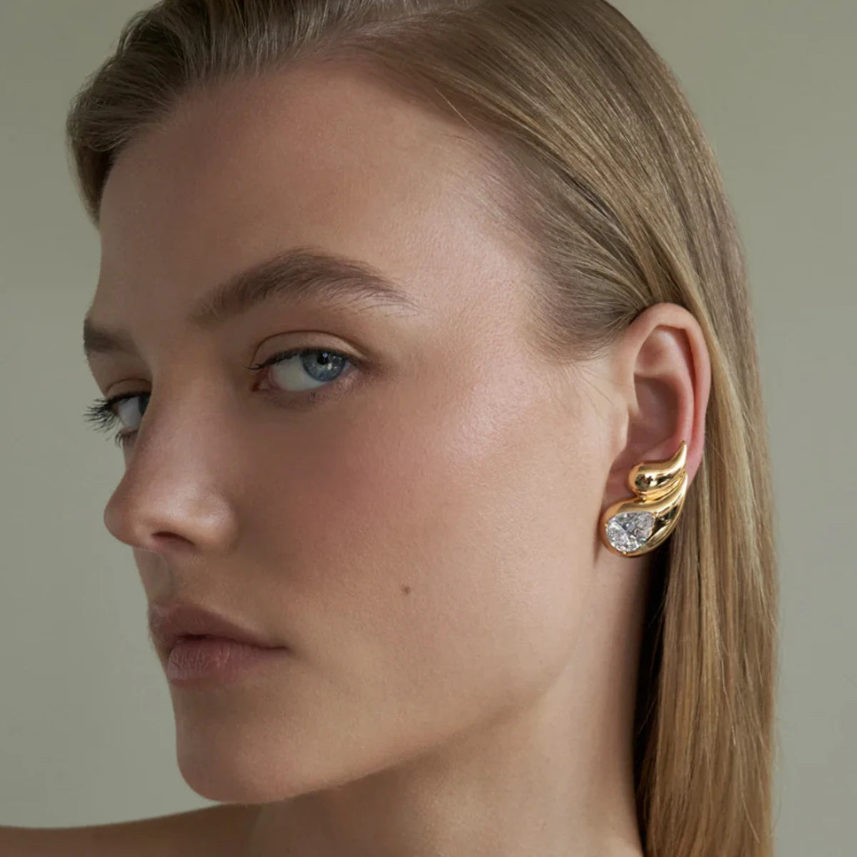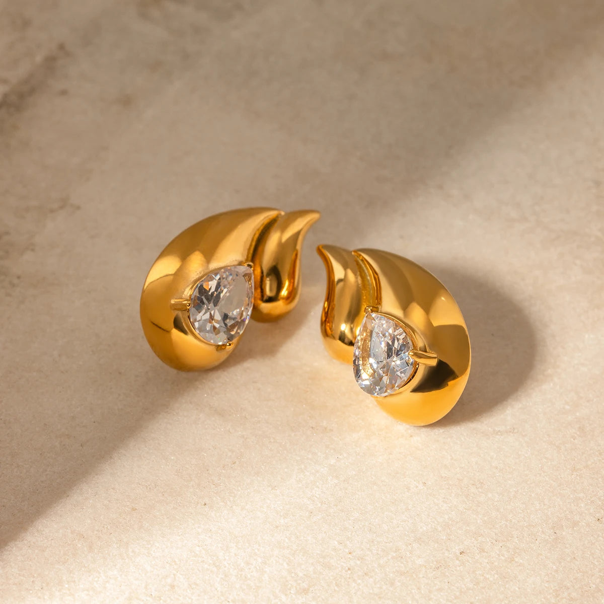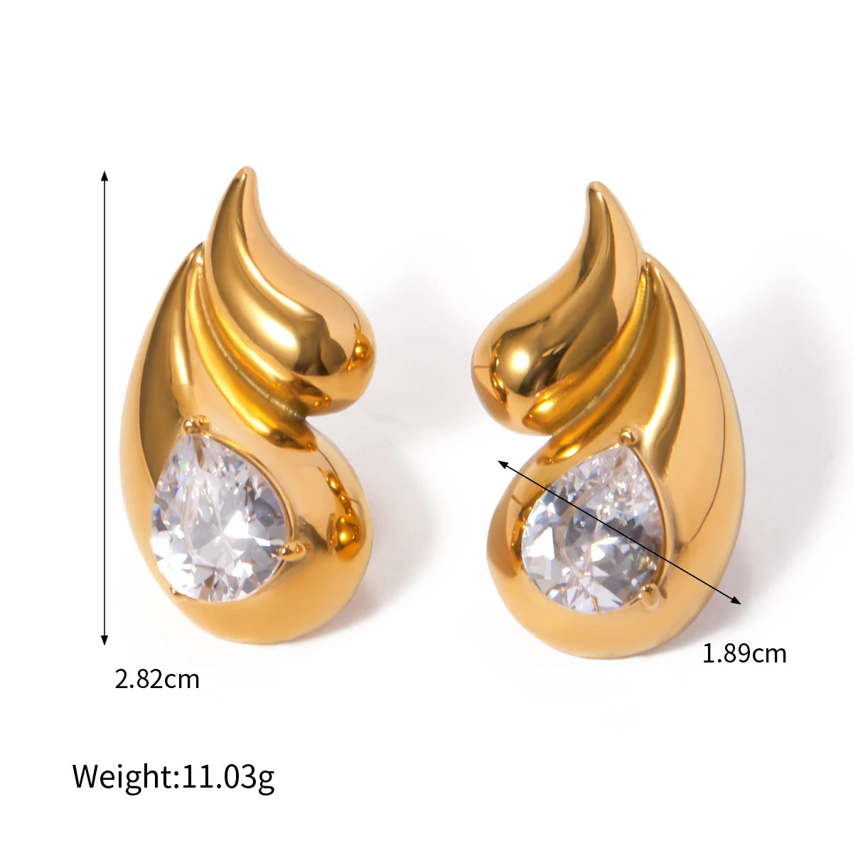 ステンレス304 低ニッケル 水に濡れても錆びにくい 18Kゴールドメッキ ピアス ティアドロップ ジルコニア 【YJ02270】