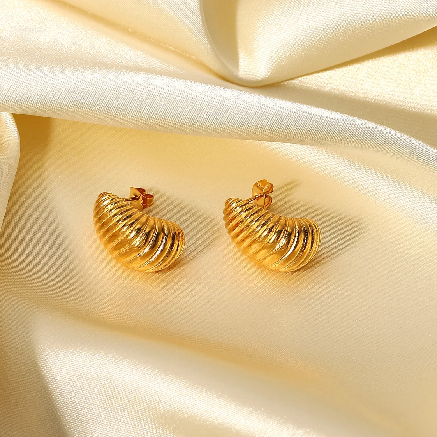 ステンレス304 低ニッケル 水に濡れても錆びにくい 18Kゴールドメッキ ピアス ツイスト ティアドロップ 【YJ03641】