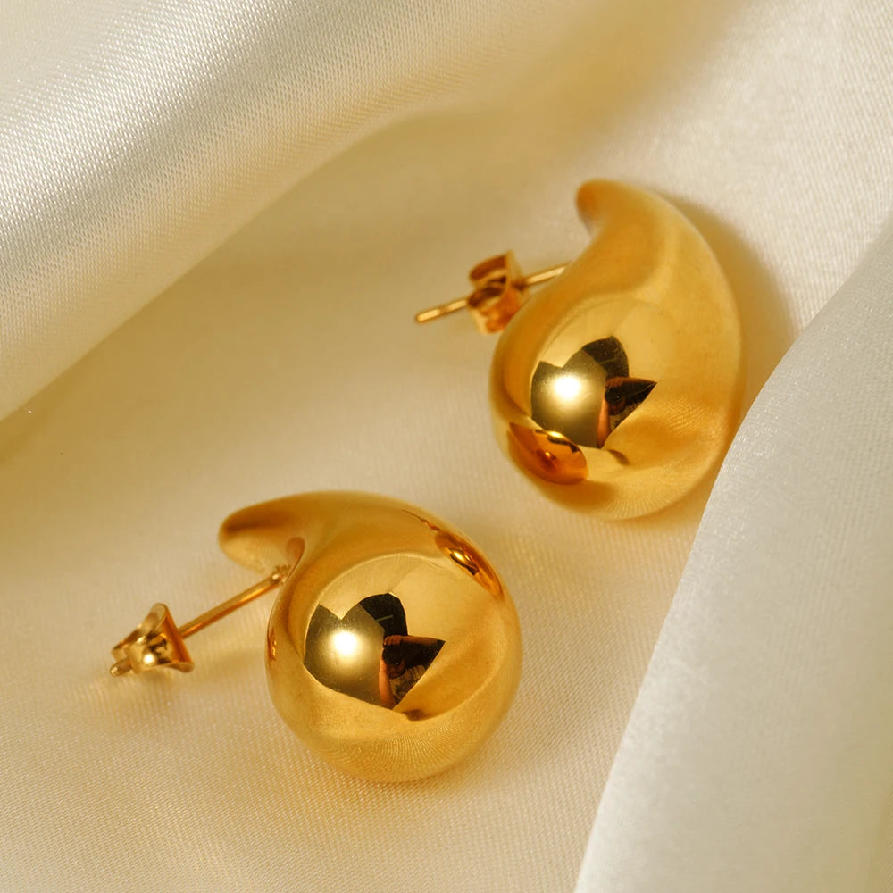 ステンレス304 低ニッケル 水に濡れても錆びにくい 18Kゴールドメッキ ピアス ティアドロップ 【YJ04042】