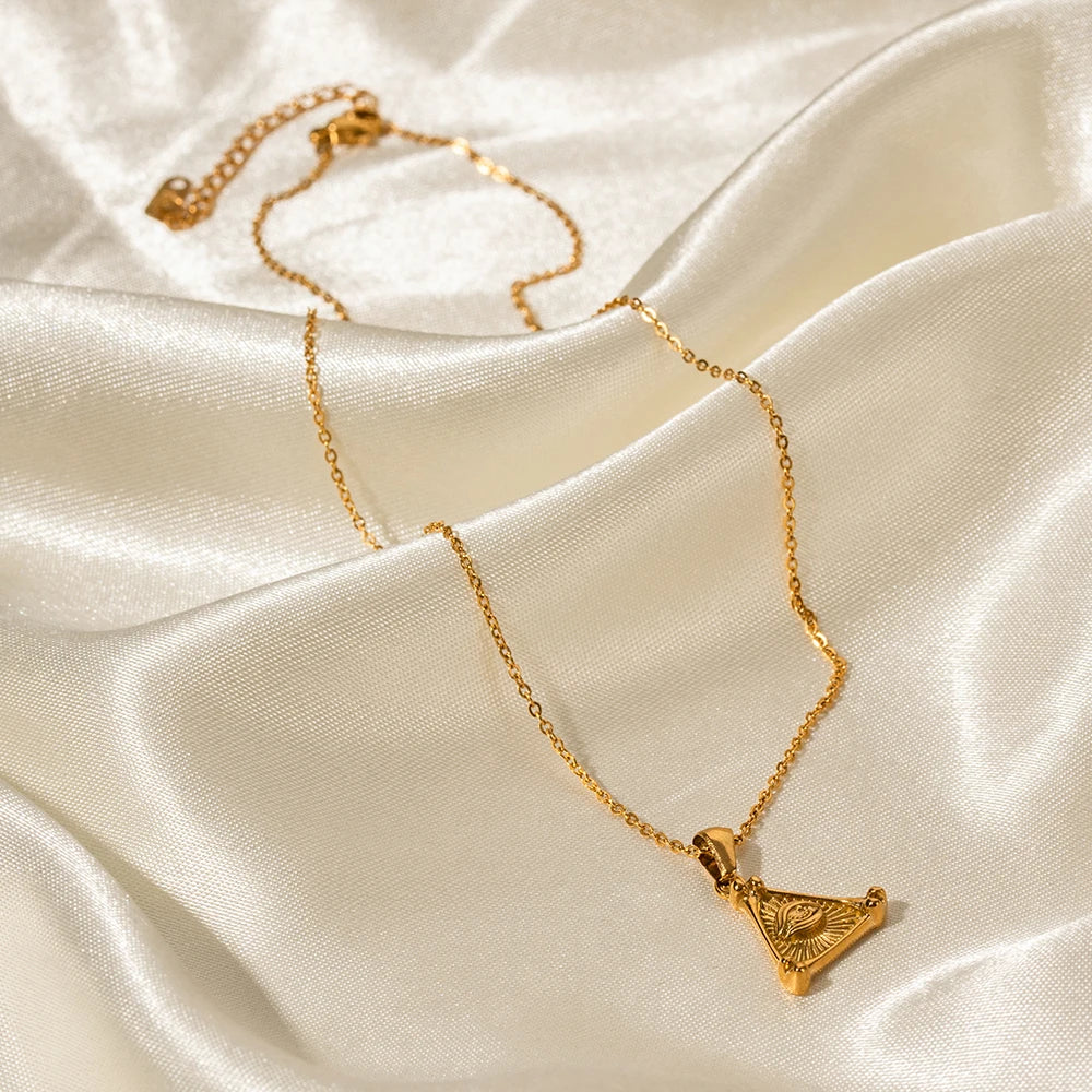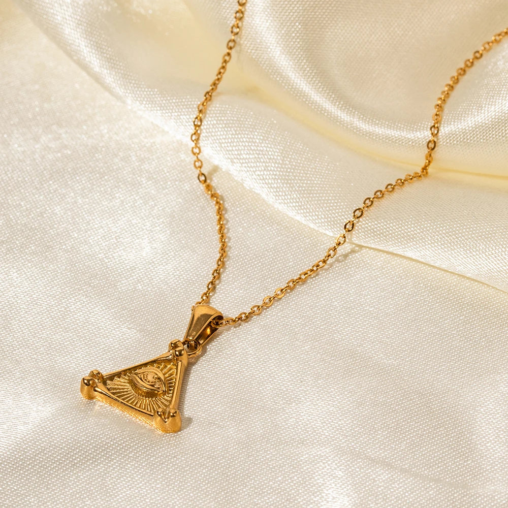 ステンレス304 低ニッケル 水に濡れても錆びにくい 18Kゴールドメッキ ネックレス トライアングル 目 アイ 【YJ02092】