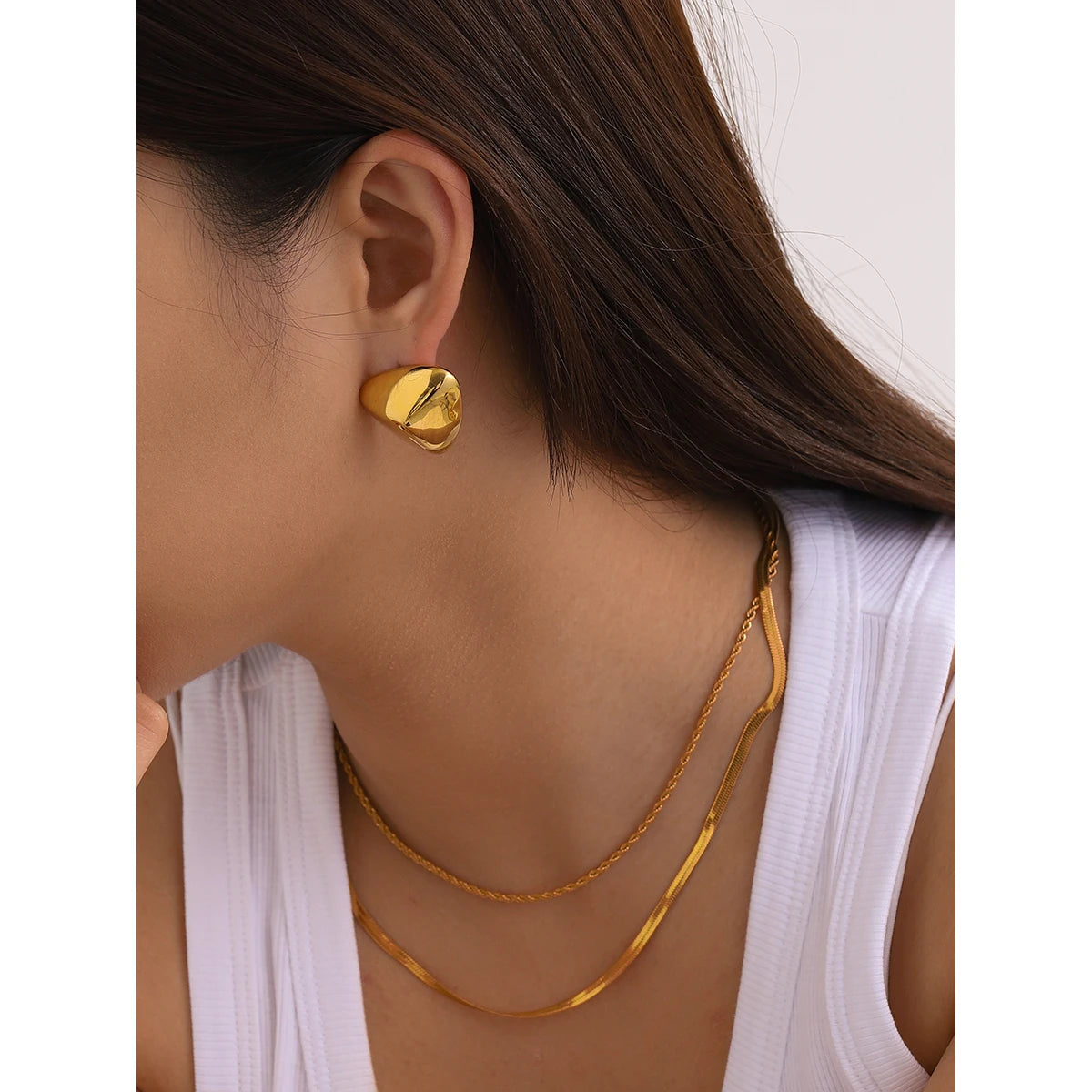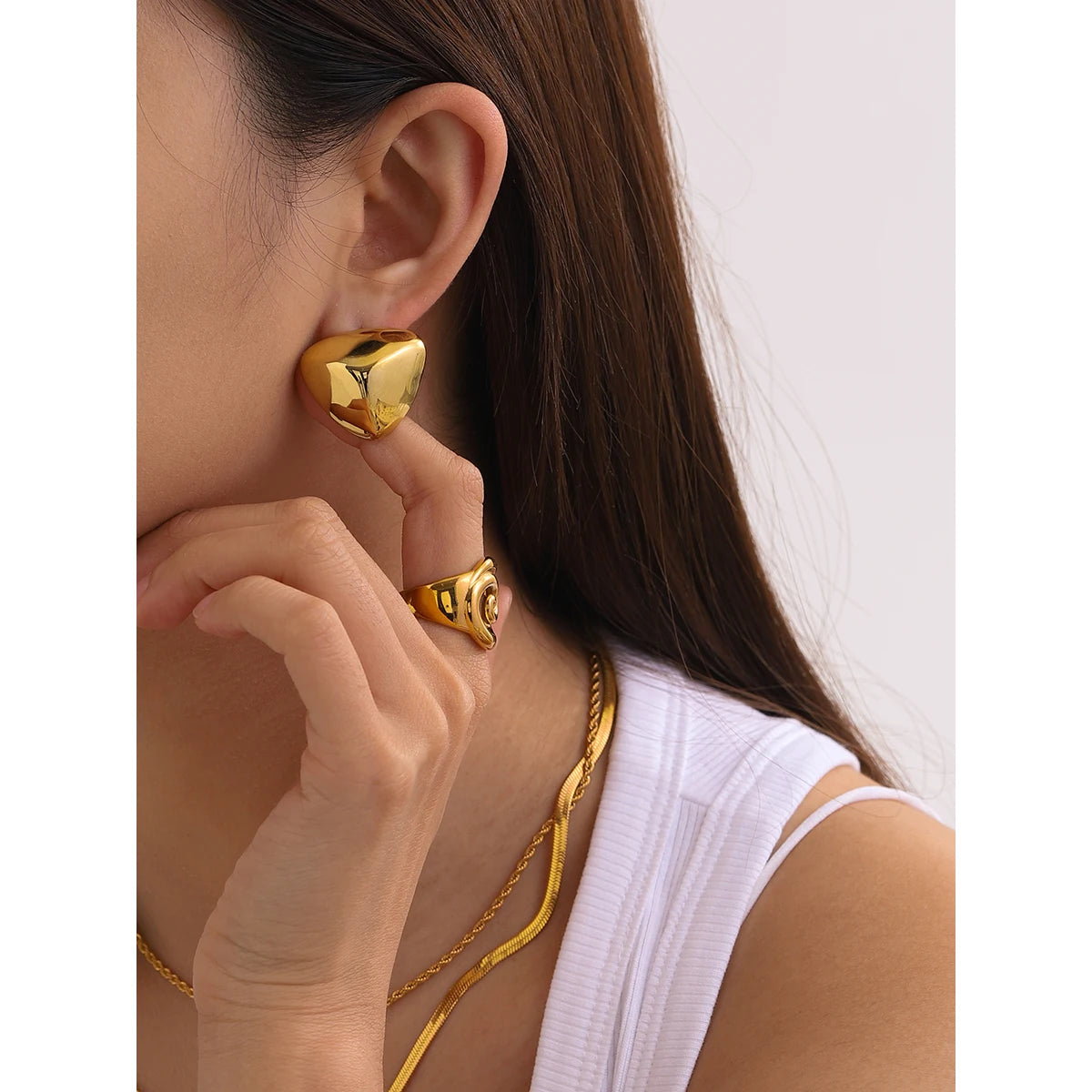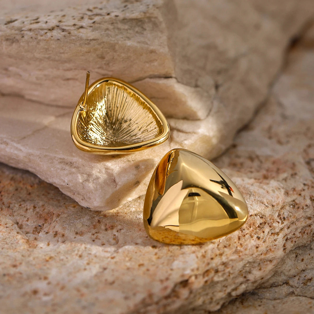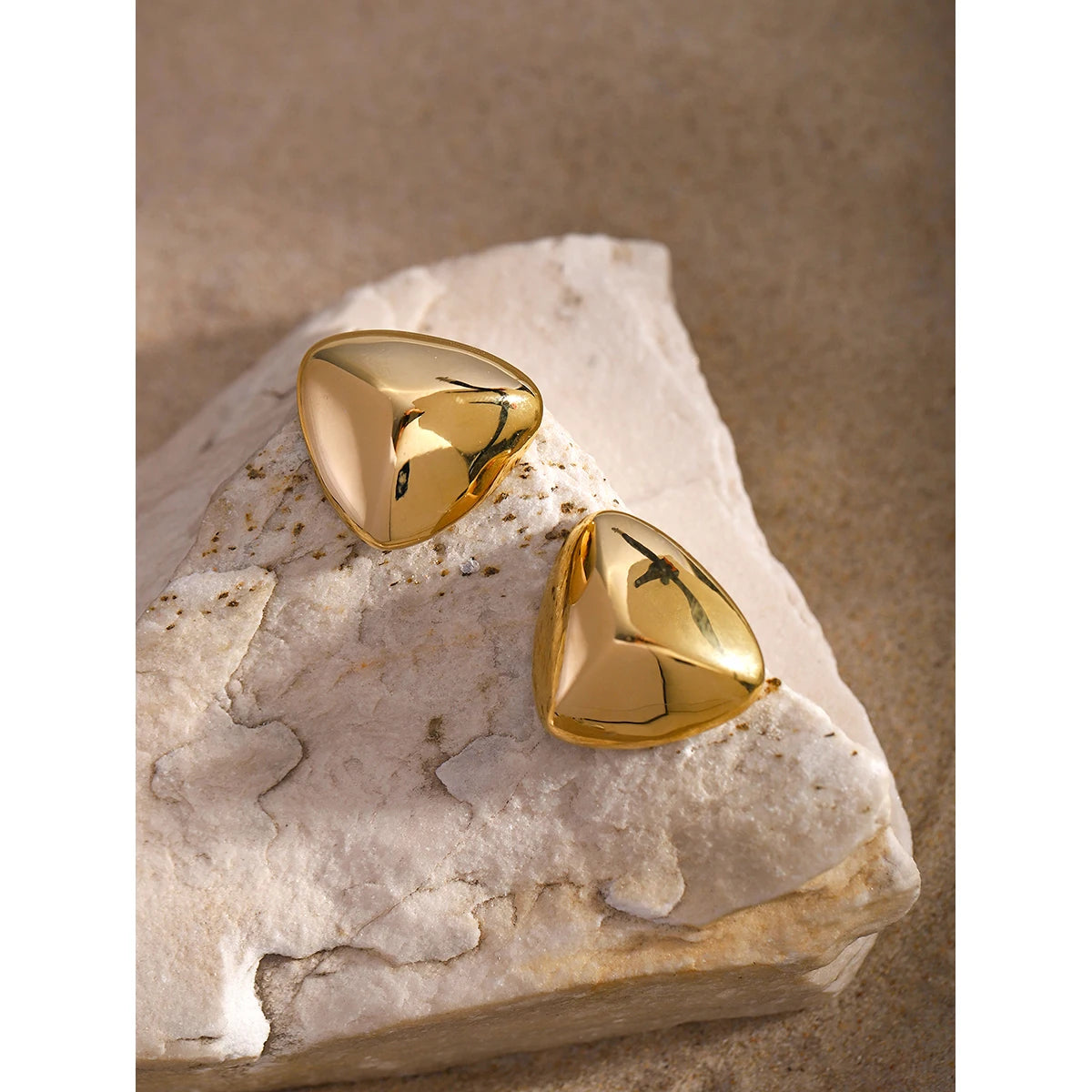 ステンレス304 低ニッケル 水に濡れても錆びにくい 18Kゴールドメッキ ピアス チャンキー トライアングル 【YJ02155】