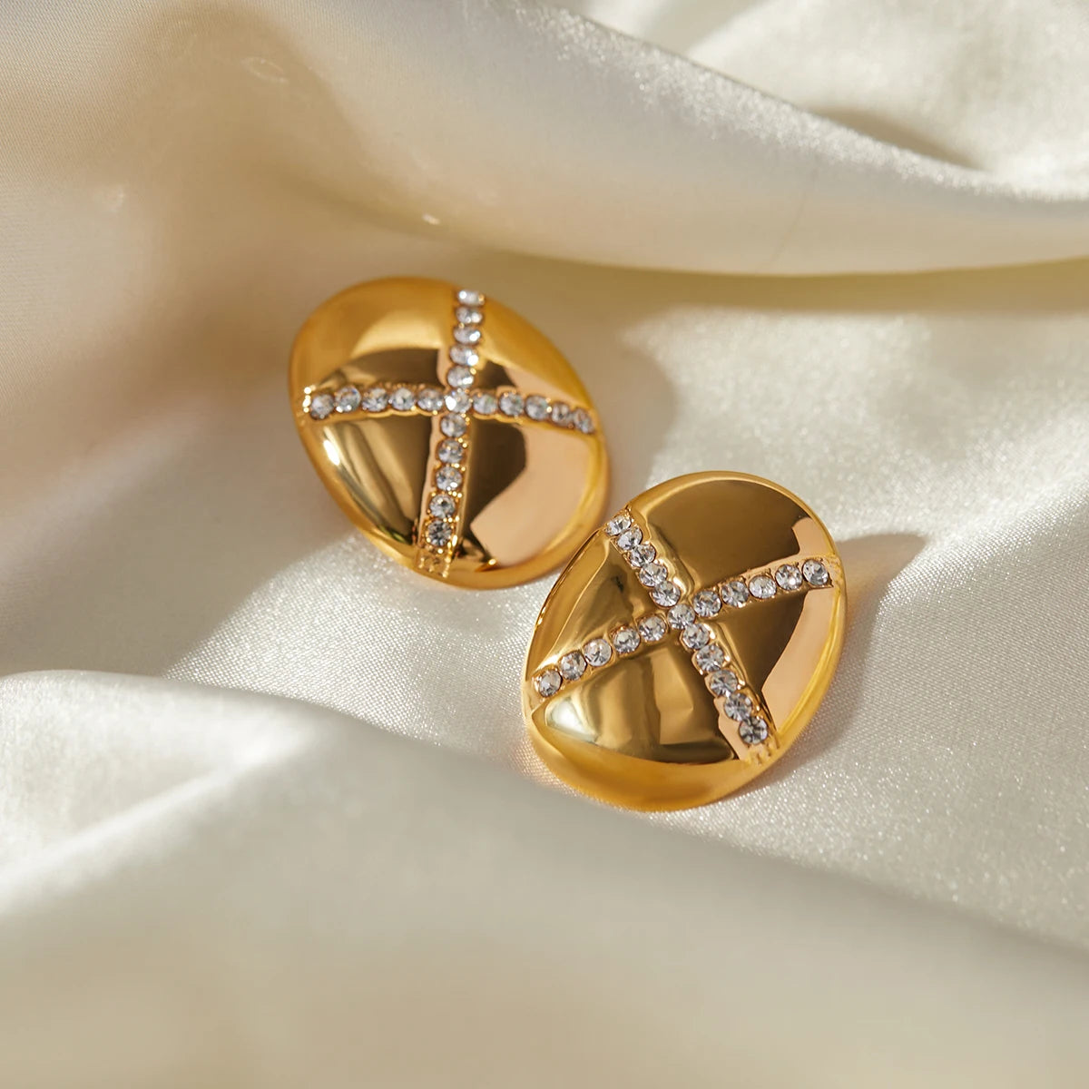 ステンレス304 低ニッケル 水に濡れても錆びにくい 18Kゴールドメッキ ピアス オーバル ハート トライアングル【YJ02225】