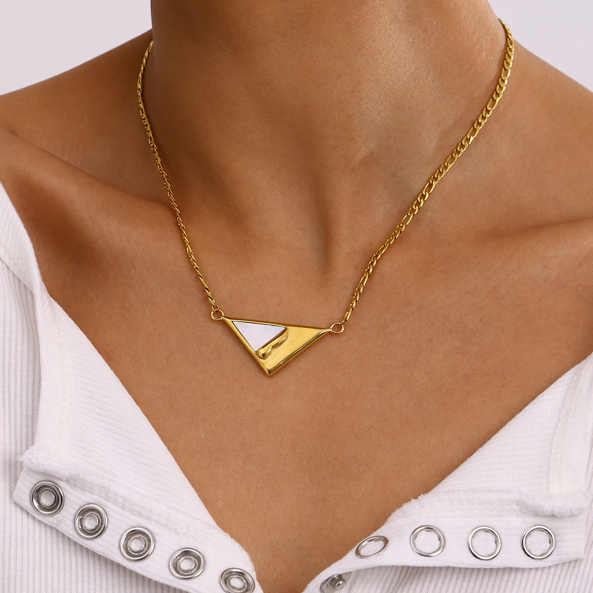 ステンレス304 低ニッケル 水に濡れても錆びにくい 18Kゴールドメッキ ネックレス トライアングル 【YJ02898】