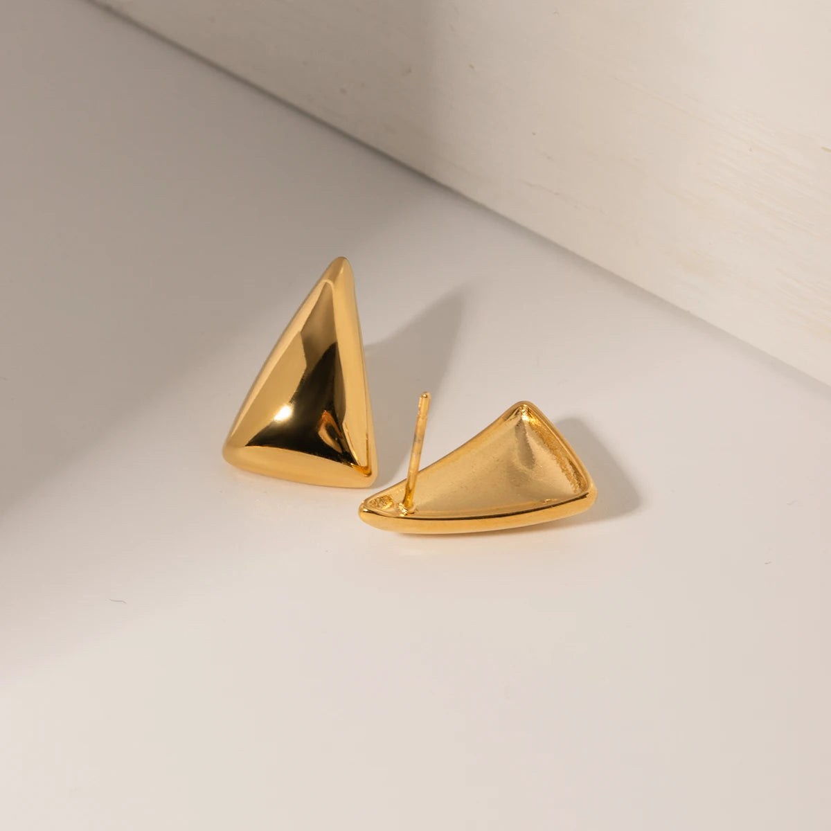ステンレス304 低ニッケル 水に濡れても錆びにくい 18Kゴールドメッキ ピアス チャンキー トライアングル 【YJ03574】