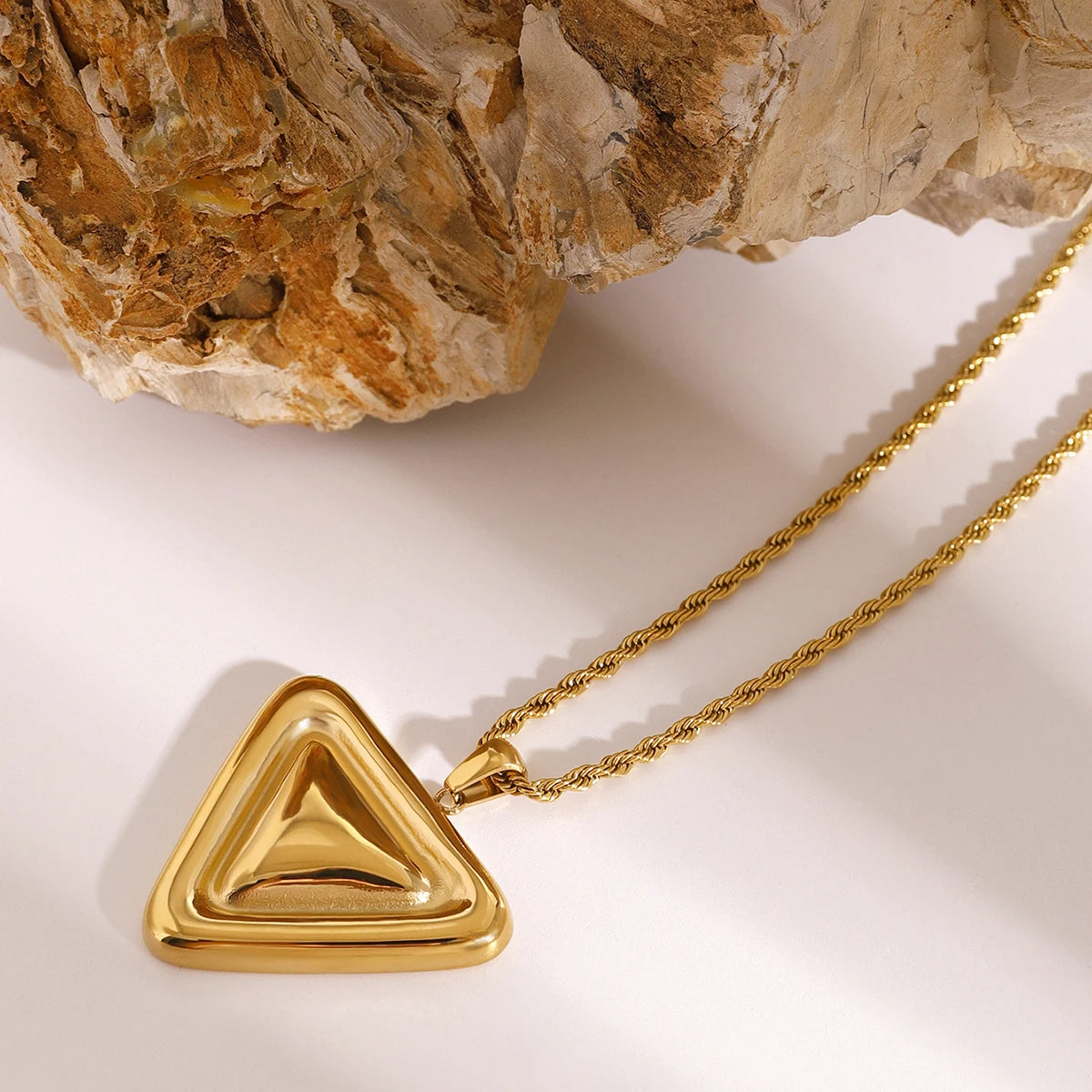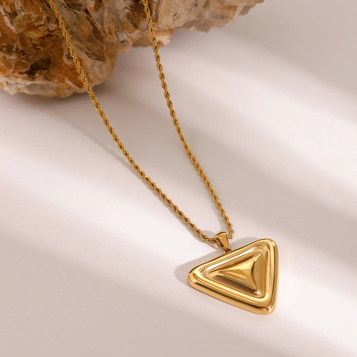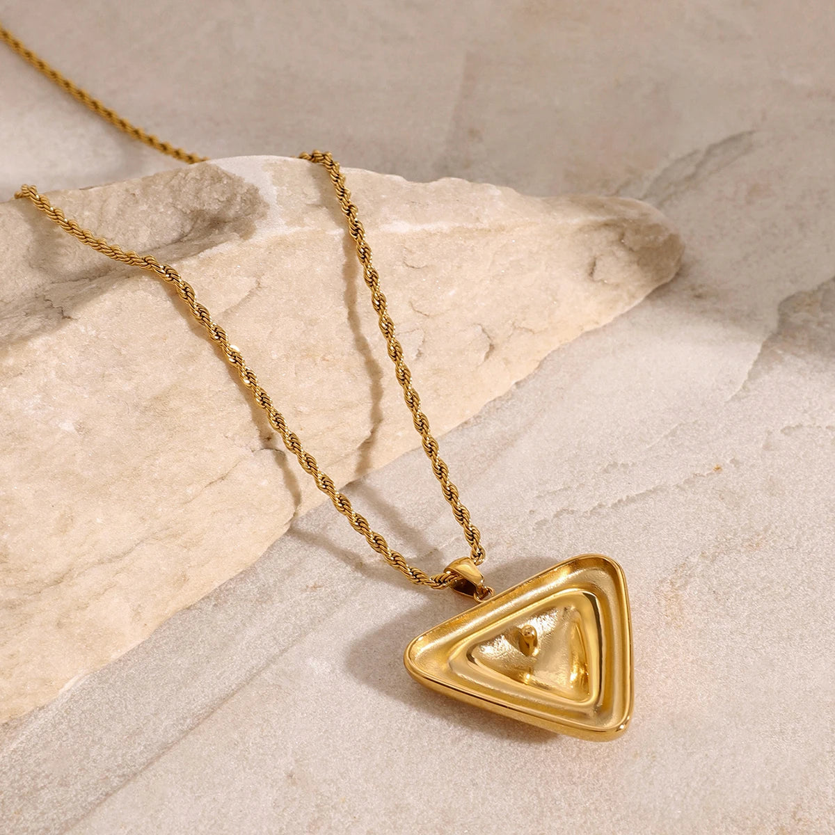 ステンレス304 低ニッケル 水に濡れても錆びにくい 18Kゴールドメッキ ネックレス トライアングル 【YJ03702】