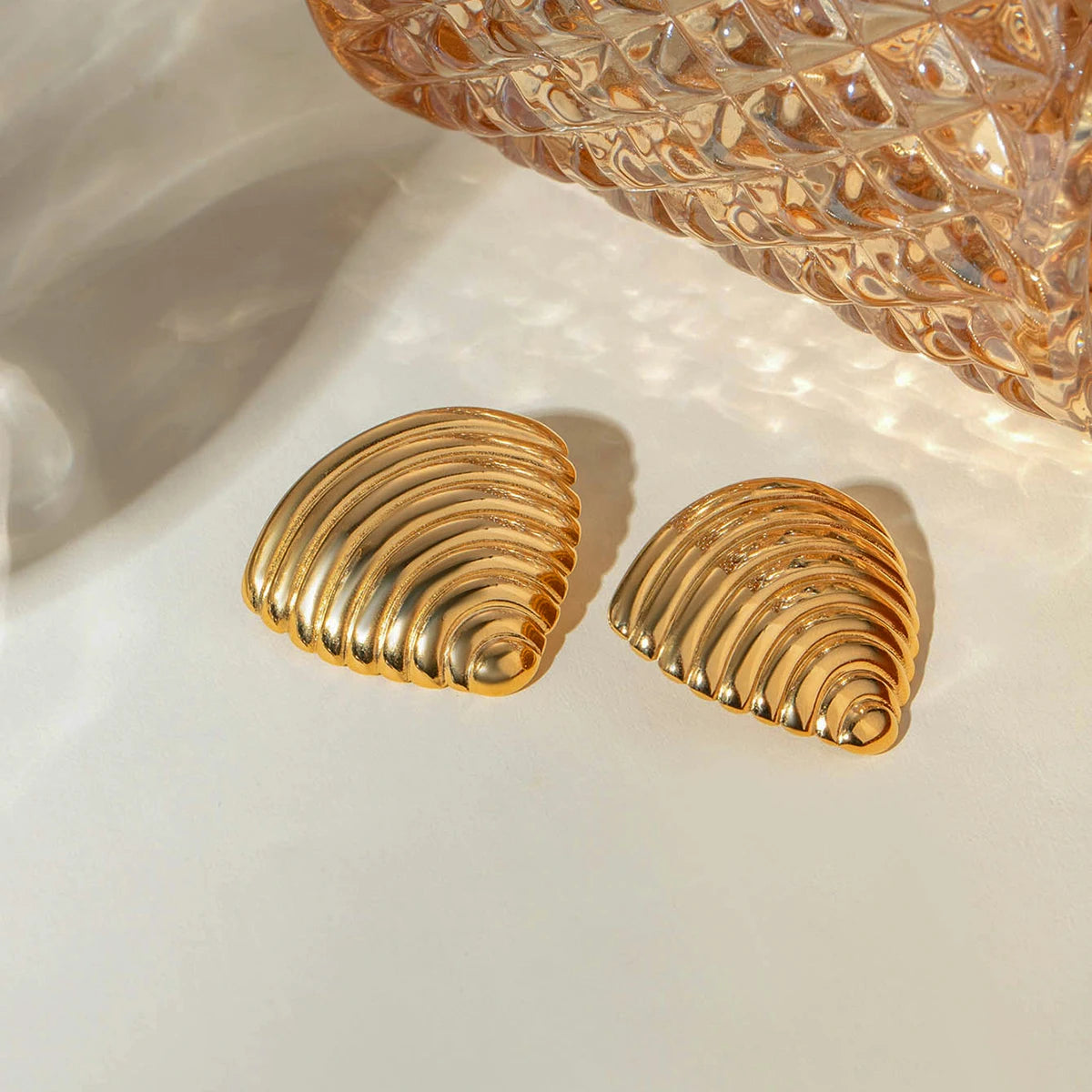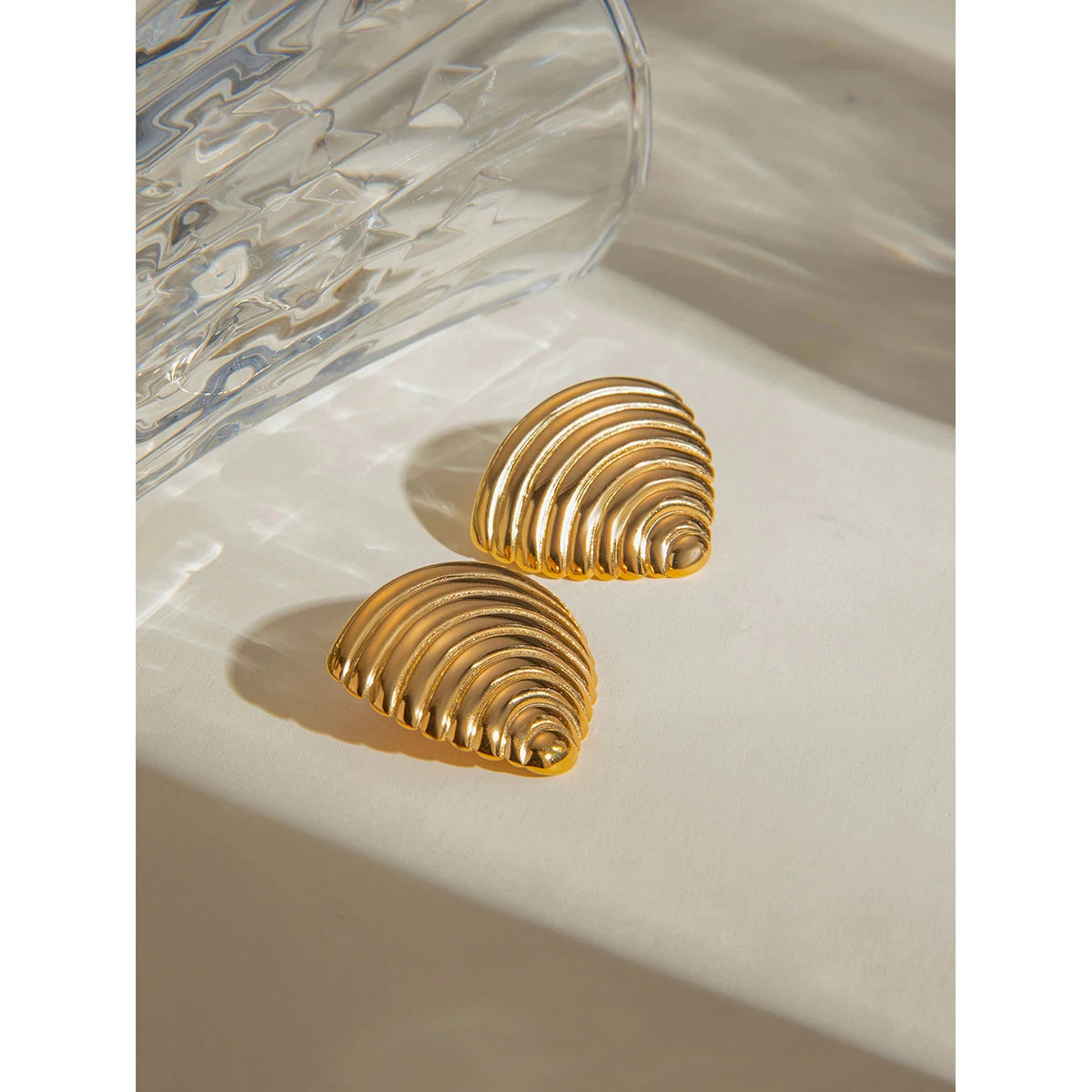 ステンレス304 低ニッケル 水に濡れても錆びにくい 18Kゴールドメッキ ピアス シェル 貝殻 トライアングル 【YJ03769】