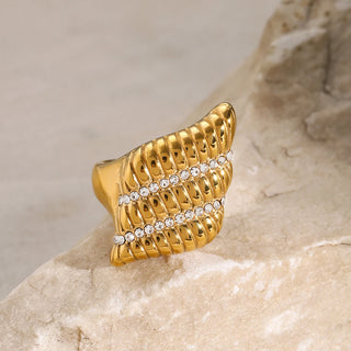 ステンレス304 低ニッケル 水に濡れても錆びにくい 18Kゴールドメッキ リング 羽 ウィング 【YJ03025】