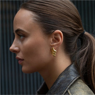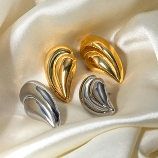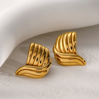 ステンレス304 低ニッケル 水に濡れても錆びにくい 18Kゴールドメッキ ピアス チャンキー 羽 ウィング 【YJ02140】