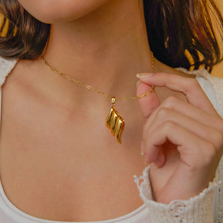 ステンレス304 低ニッケル 水に濡れても錆びにくい 18Kゴールドメッキ ネックレス 羽 ウィング 【YJ03505】