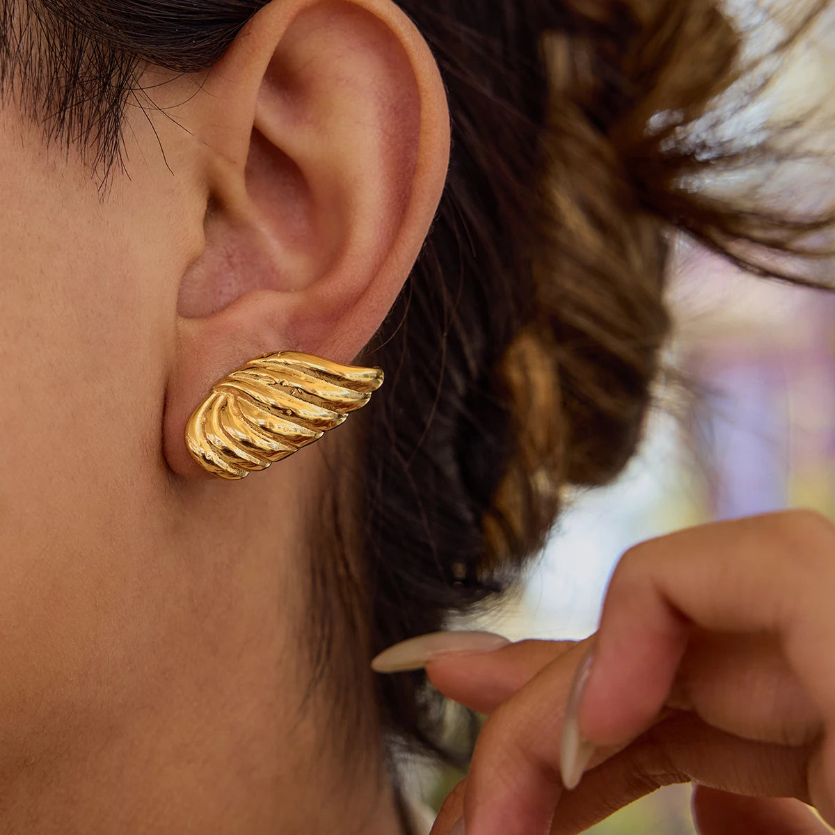 ステンレス304 ニッケルフリー 水に濡れても錆びにくい 18Kゴールドメッキ ピアス 羽 ウィング 【YJ00878】