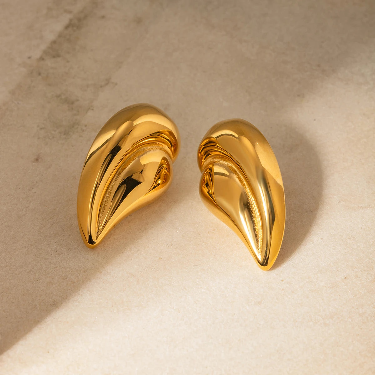 ステンレス304 低ニッケル 水に濡れても錆びにくい 18Kゴールドメッキ ピアス 羽 ウィング 【YJ01918】