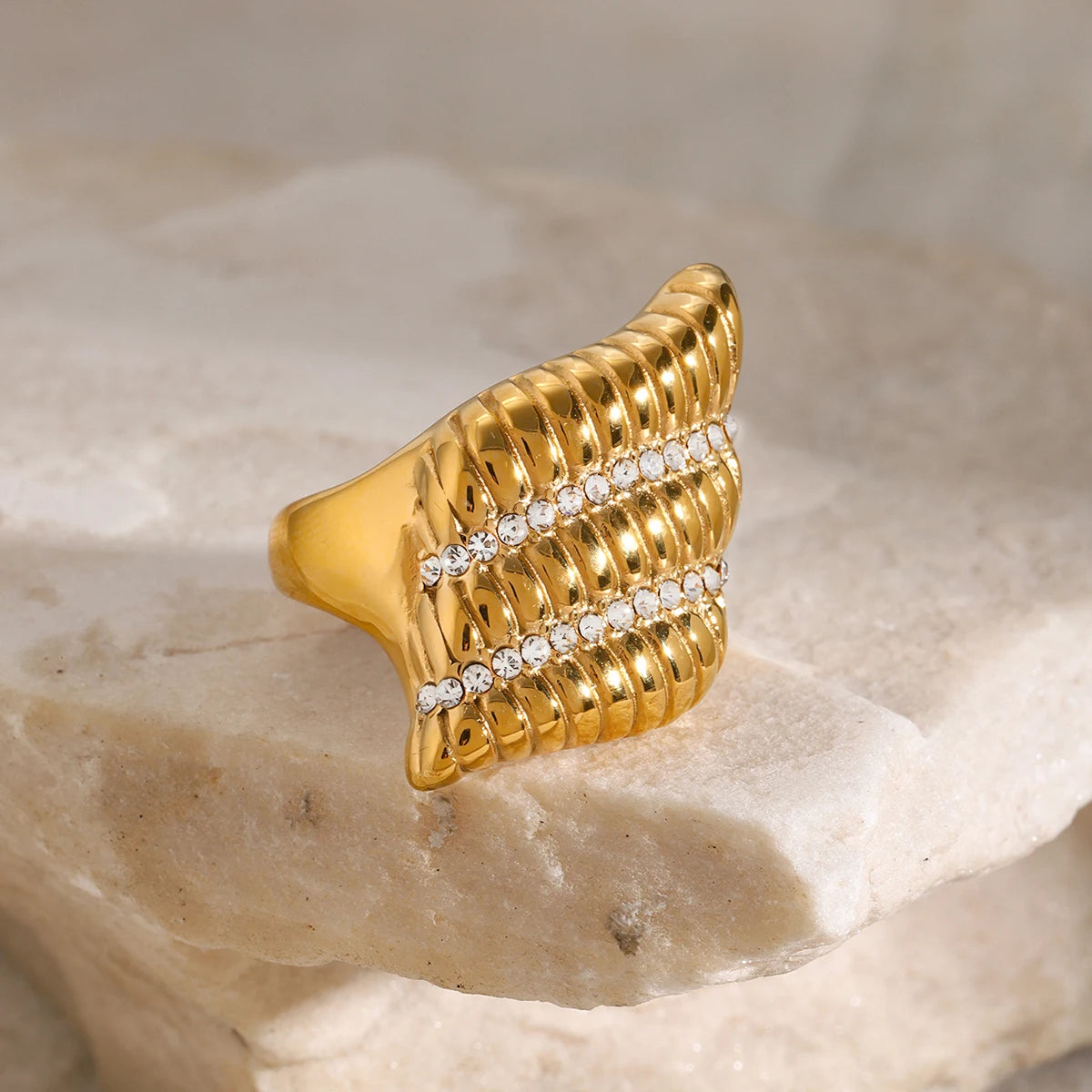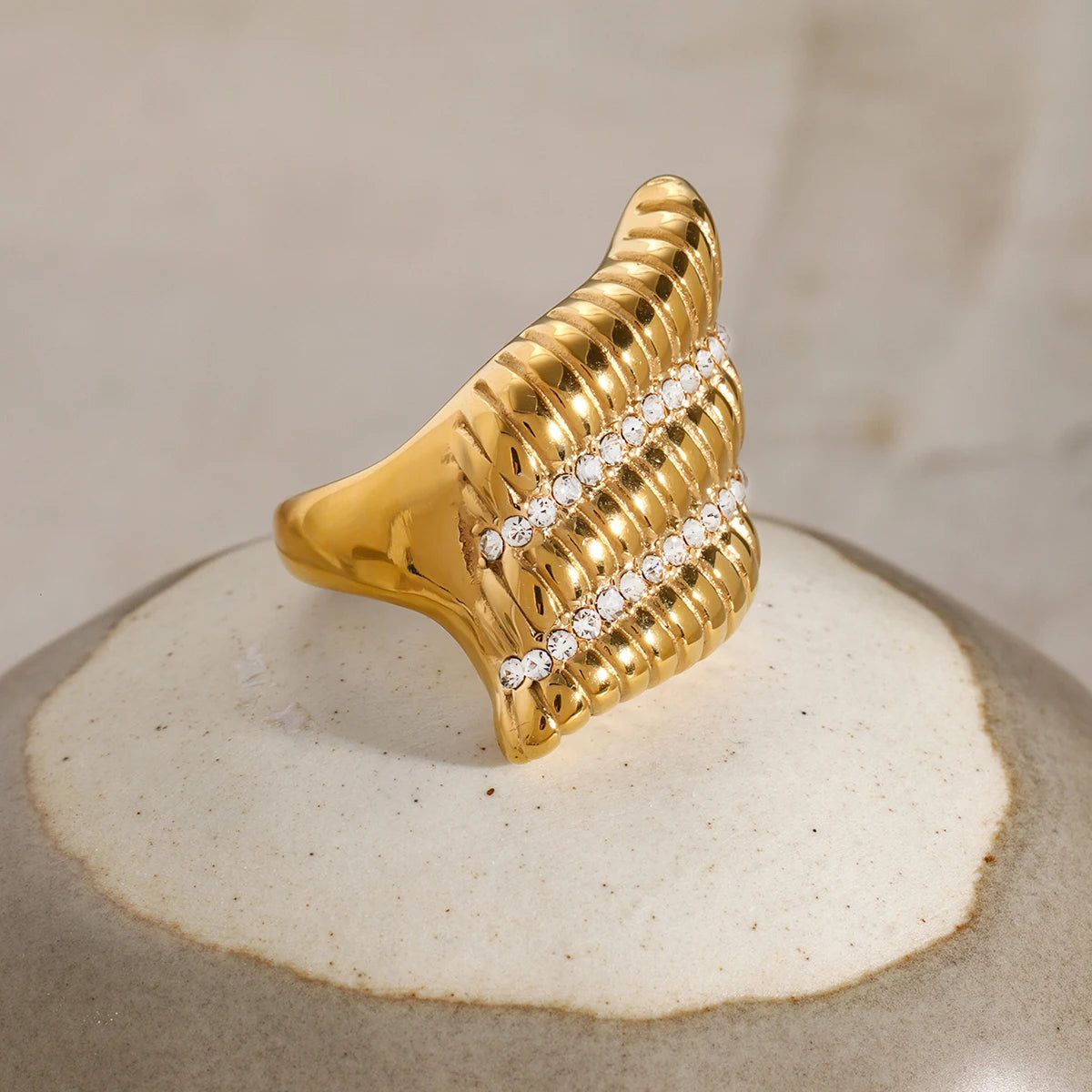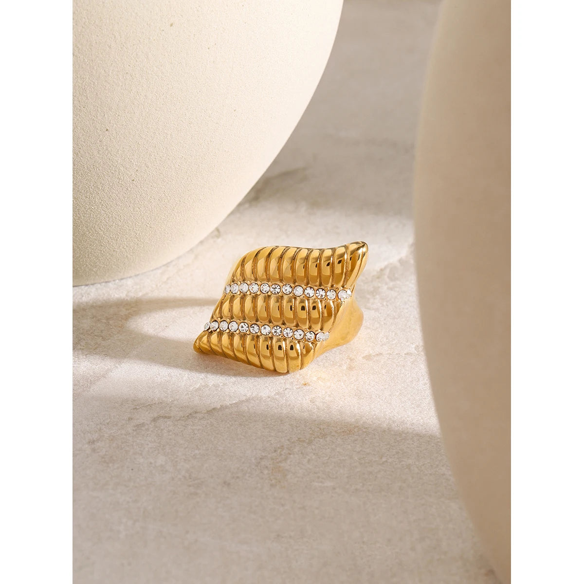 ステンレス304 低ニッケル 水に濡れても錆びにくい 18Kゴールドメッキ リング 羽 ウィング 【YJ02109】