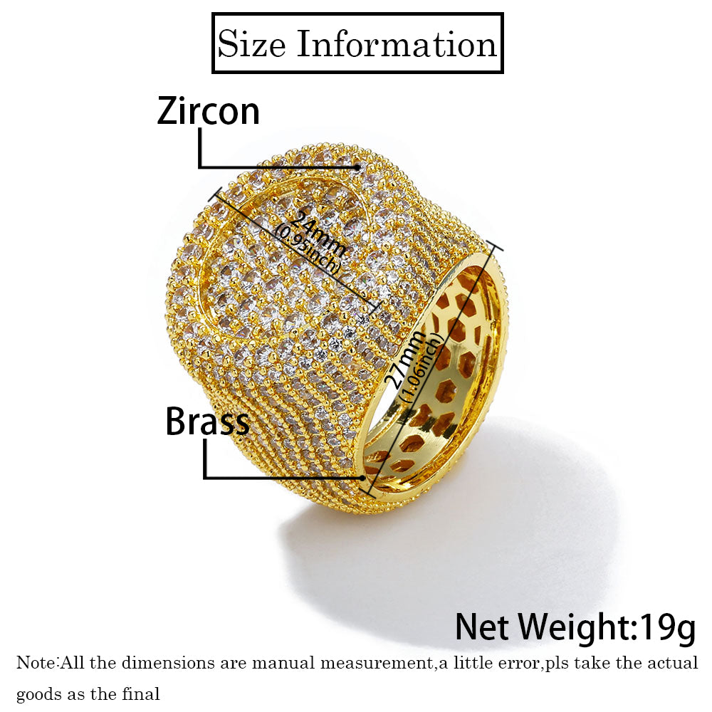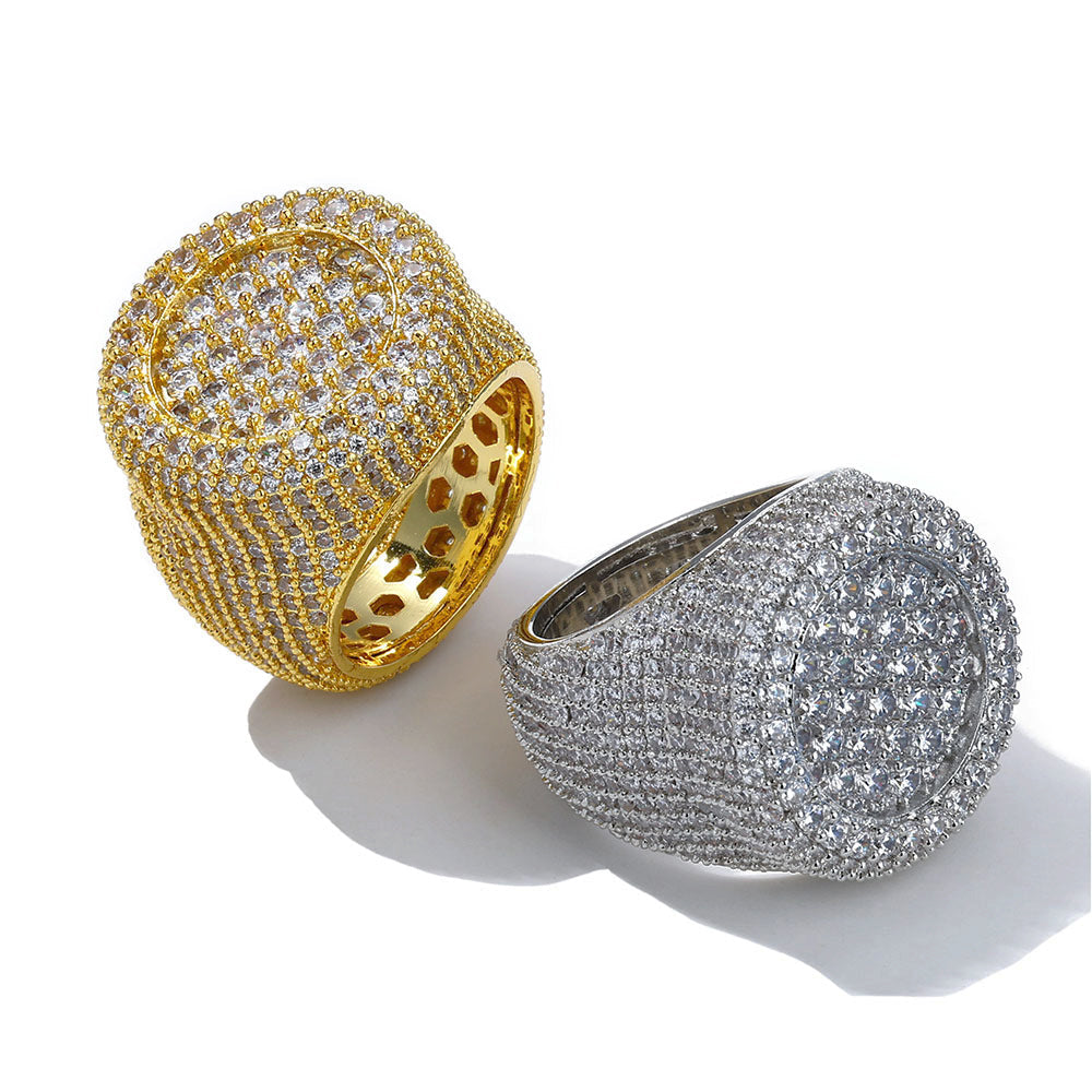 高品質真鍮 A3ランクジルコニア 18Kゴールドメッキ シグネット リング アイスドアウト ヒップホップ【NJ00002】