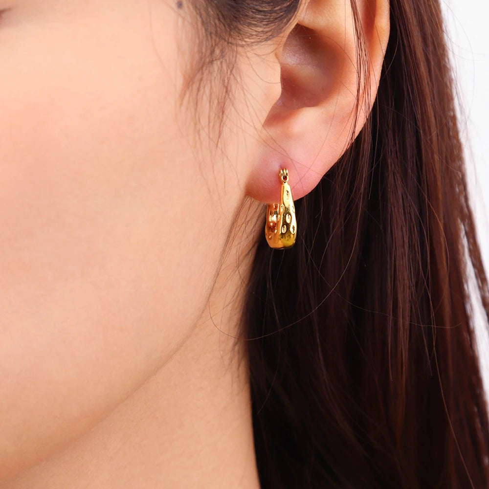 - ピアスのポスト部分は素材の特性上、キャッチがきつく感じられる場合や、スムーズに取り外せないことがありますが、これは不良品ではありませんのでご了承ください。特に新品時はゴールドメッキコーティングの厚みにより、やや固めに感じることがございます。無理に力を加えるとポストの曲がりや破損につながる可能性があるため、優しくゆっくりと着脱いただくことをおすすめします。