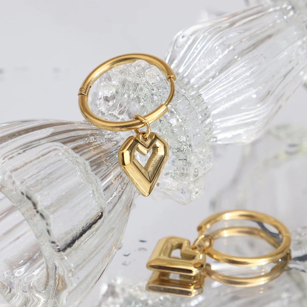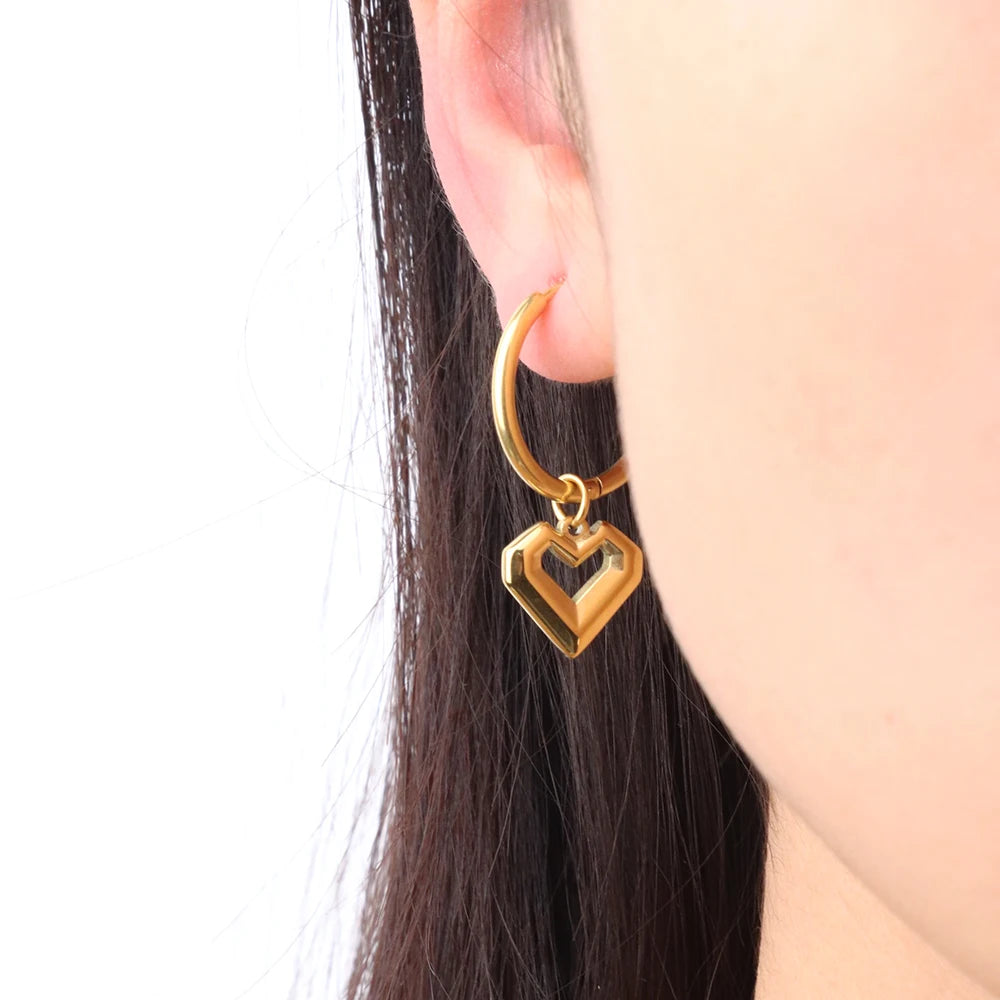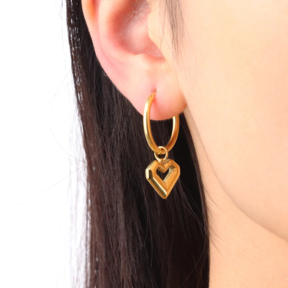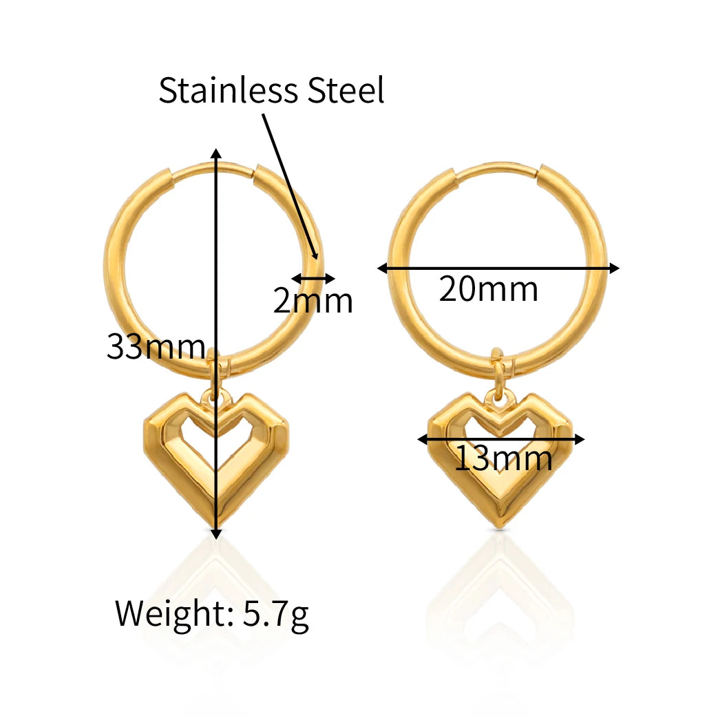 316Lサージカルステンレス 18Kゴールドメッキ ピアス フープ ハート 【NY00670】