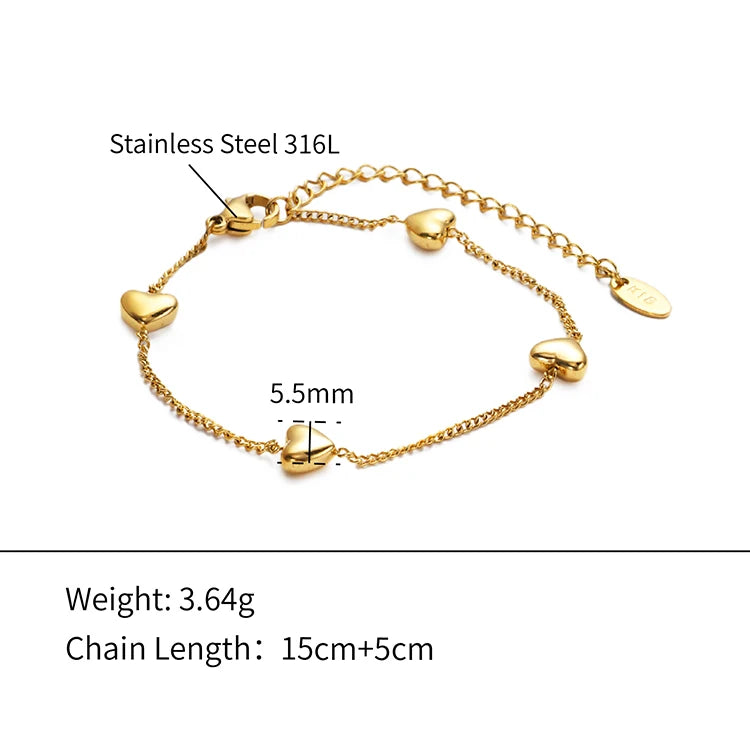 316Lサージカルステンレス ブレスレット チャーム ハート 【NY00722】