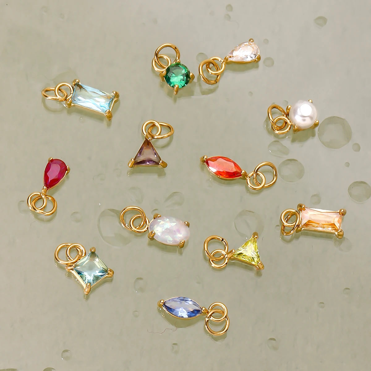 ステンレス304 ニッケルフリー 水に濡れても錆びにくい チャーム ジルコニア 【YJ00809】