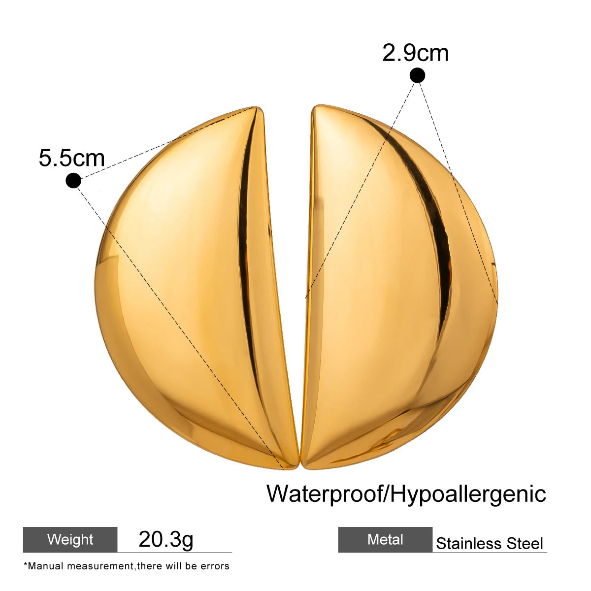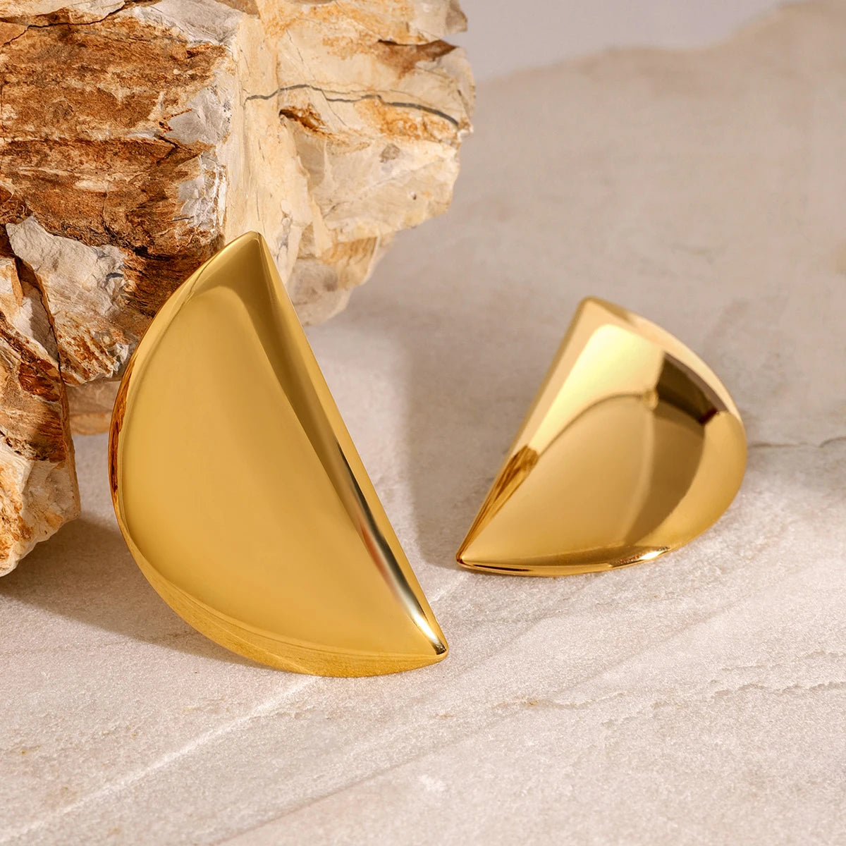 ステンレス304 低ニッケル 水に濡れても錆びにくい 18Kゴールドメッキ ピアス チャンキー 月 【YJ03321】