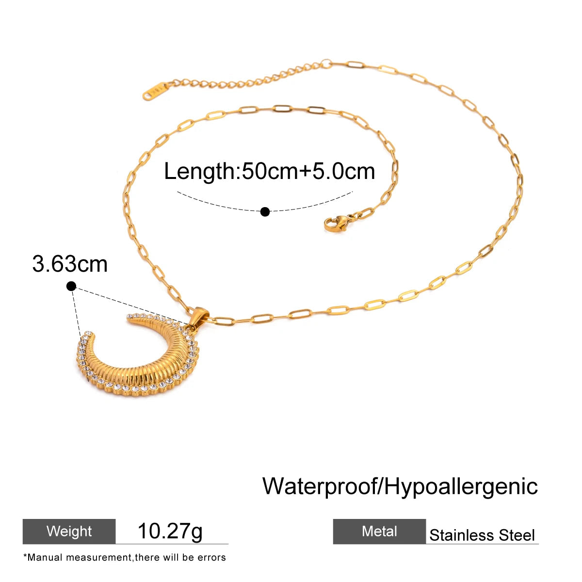 ステンレス304 低ニッケル 水に濡れても錆びにくい 18Kゴールドメッキ ネックレス 月 【YJ03825】